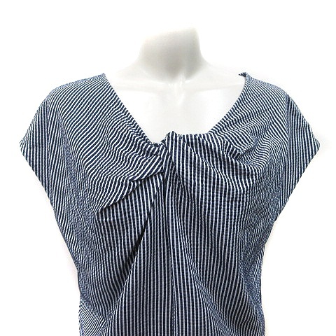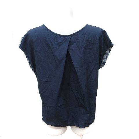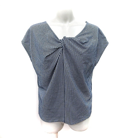 ロペ ROPE シャツ ブラウス プルオーバー 切替 ストライプ フレンチスリーブ 38 M 紺 ネイビー /YI レディース