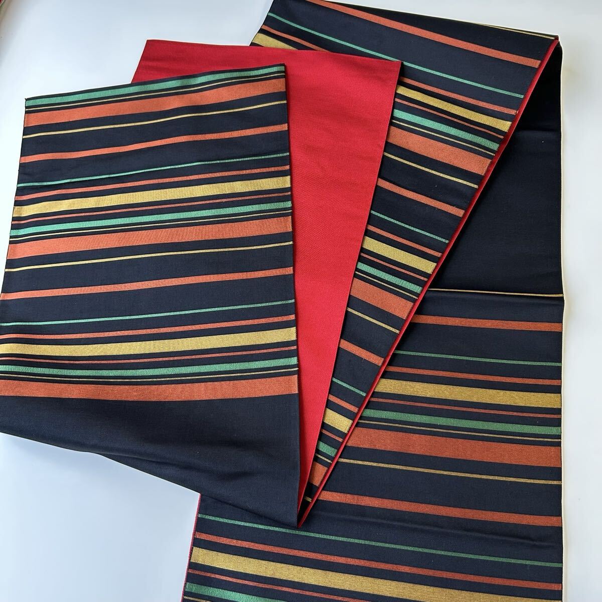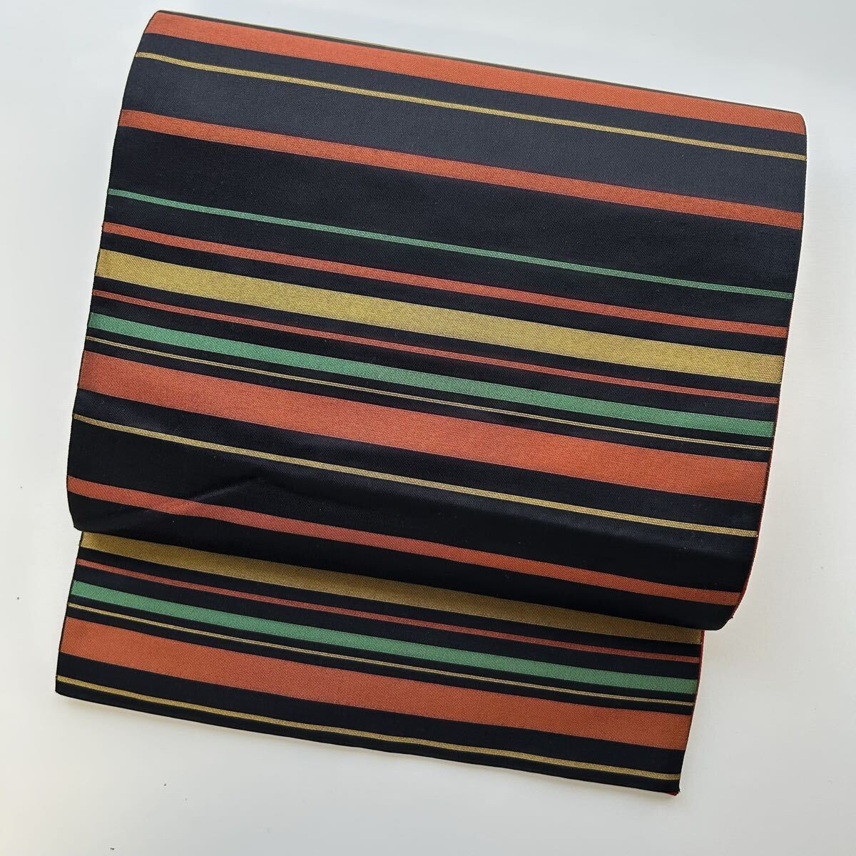 【楓】京袋帯 正絹 黒地 横断 粋なデザイン KK-1887