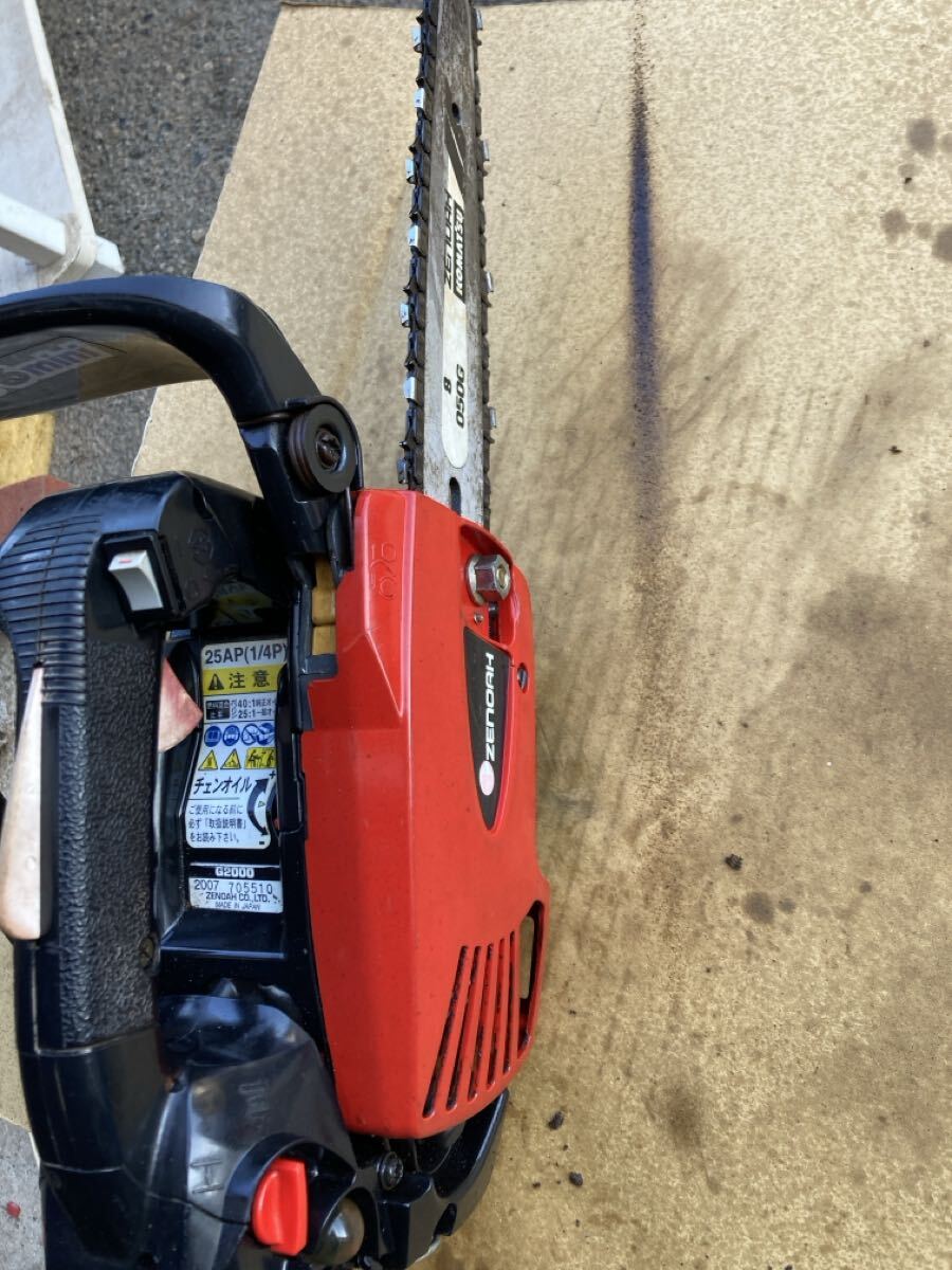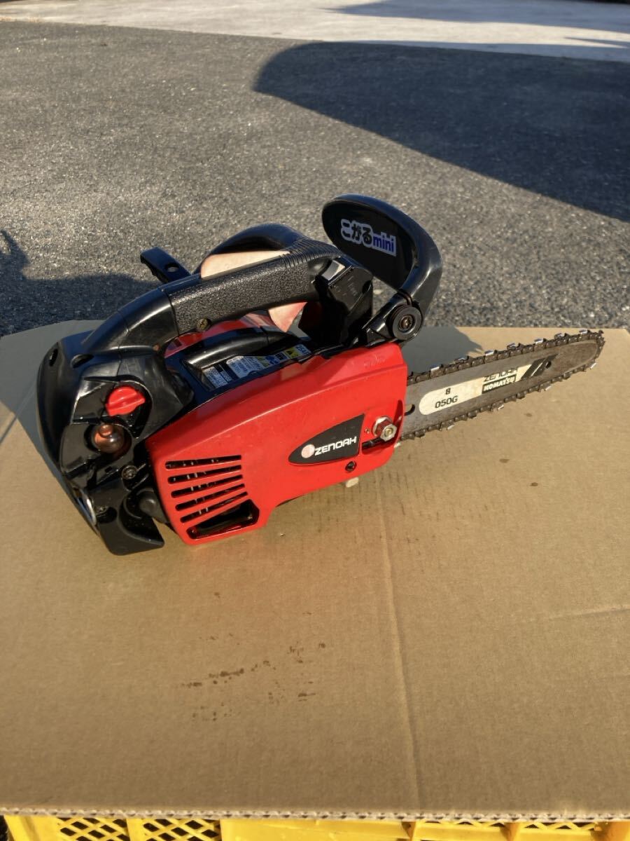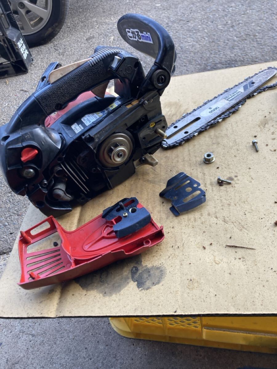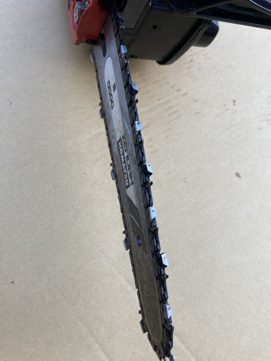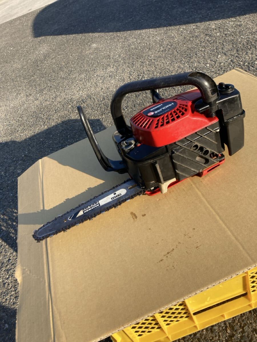 使用状況:使用感はありますが、エンジン始動、アイドリング、吹き上がり確認、チェーンオイル、簡単な木材による実演動作確認まで行いました。