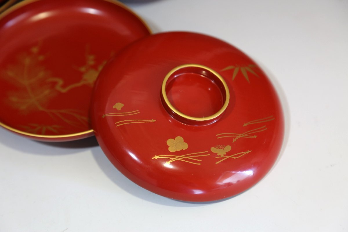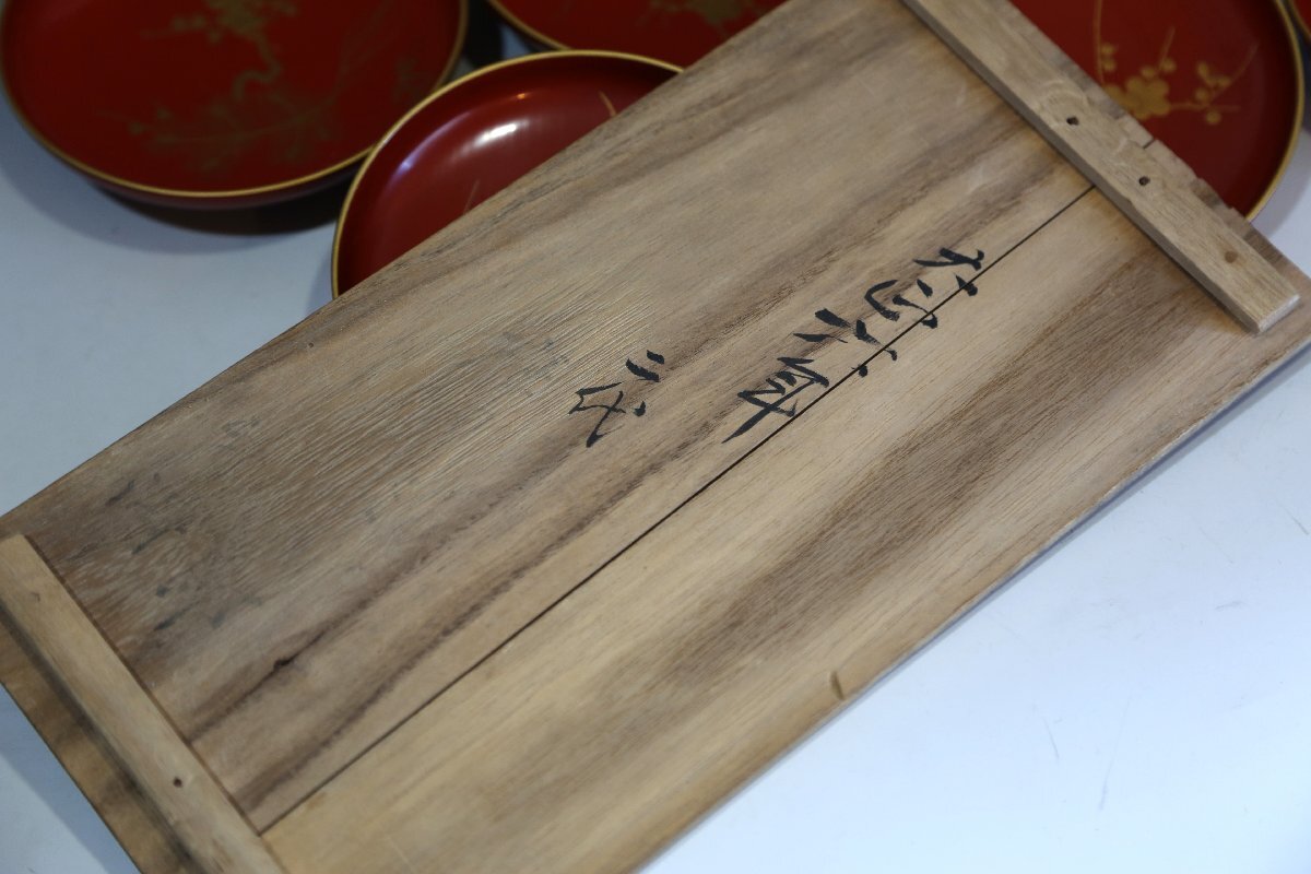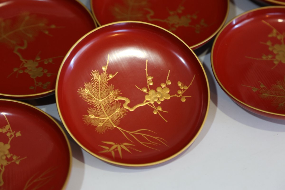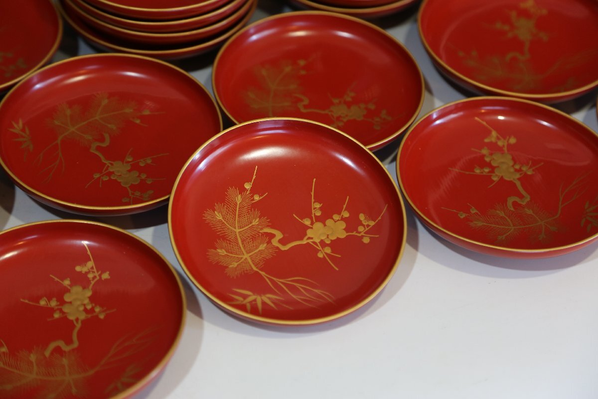★★★ 大正期 木製 朱塗 松竹梅蒔絵 引き盃 20客 ★★★ 58