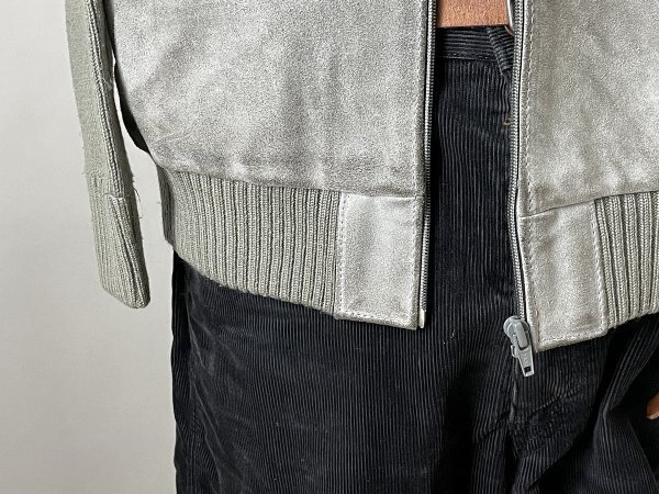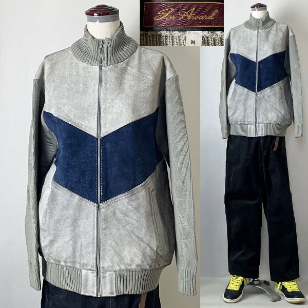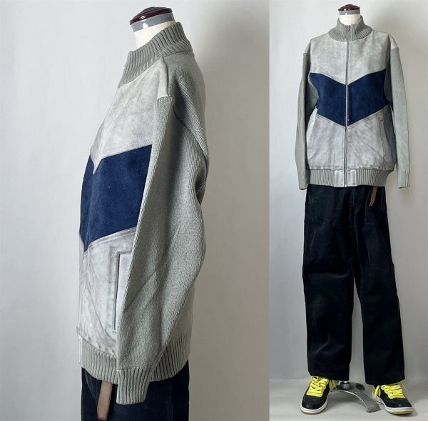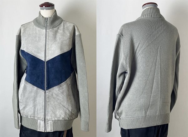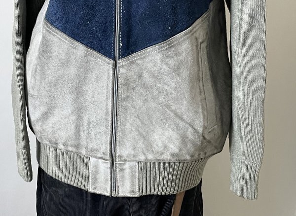 ★【90~00年代モデル ビンテージ】 レザースウェード×ニット 切り替え スタンドカラー ジャケット ライダース M グレー×ネイビー