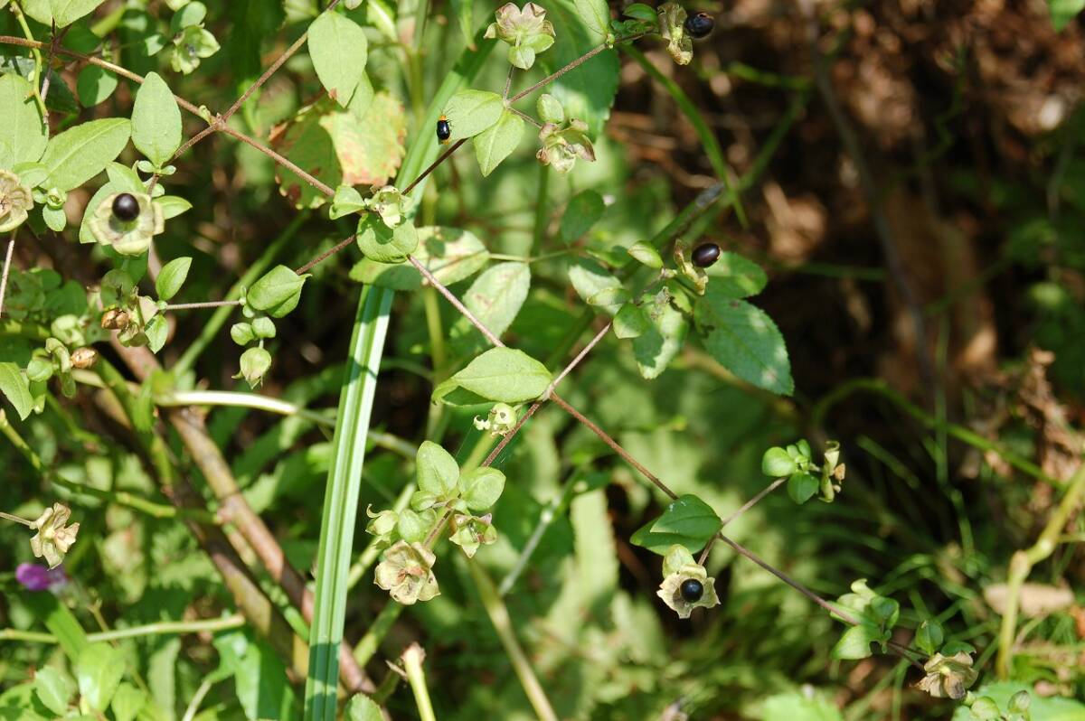 角に対生に枝を出す姿が独特であり、緑色から黒く熟すと簡単に割れる実や中からこぼれる小さな