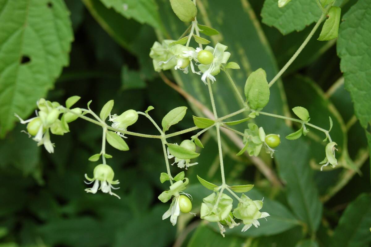 物です。野山の草やぶや林のへりなどで、周囲の草や木に寄り掛かるように自生していますが、数