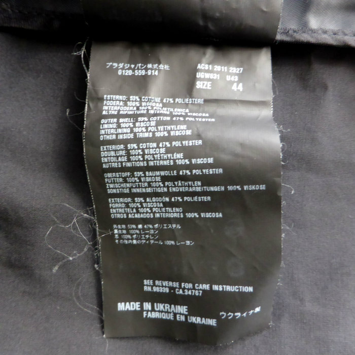 | プラダ(PRADA) コットン×ポリエステル ステンカラー コート アウター 44 ブラック UGW831 ウェア メンズ(中古) |