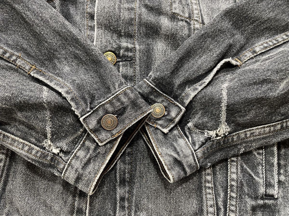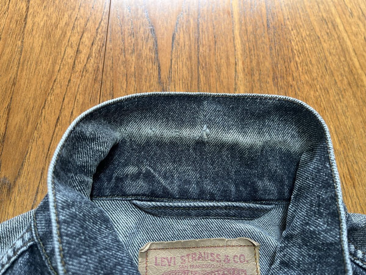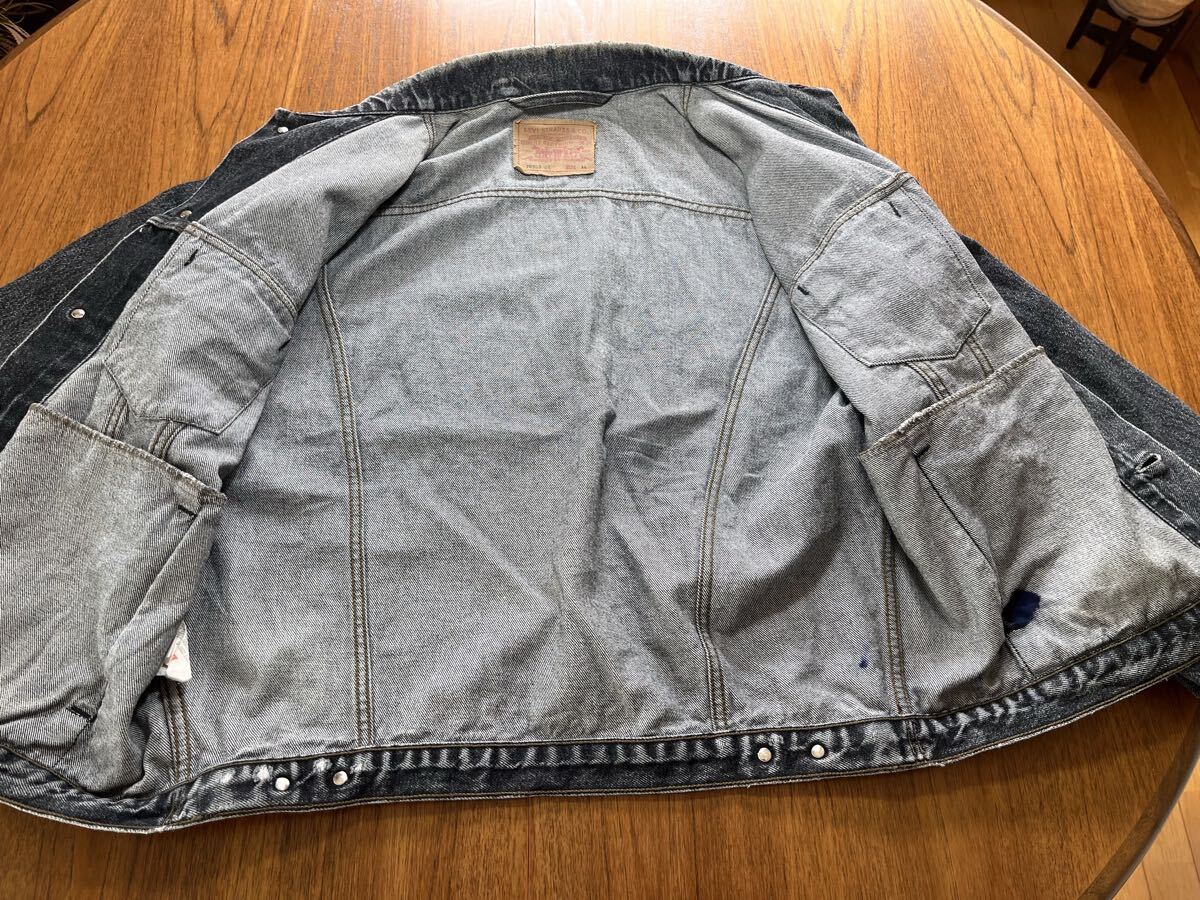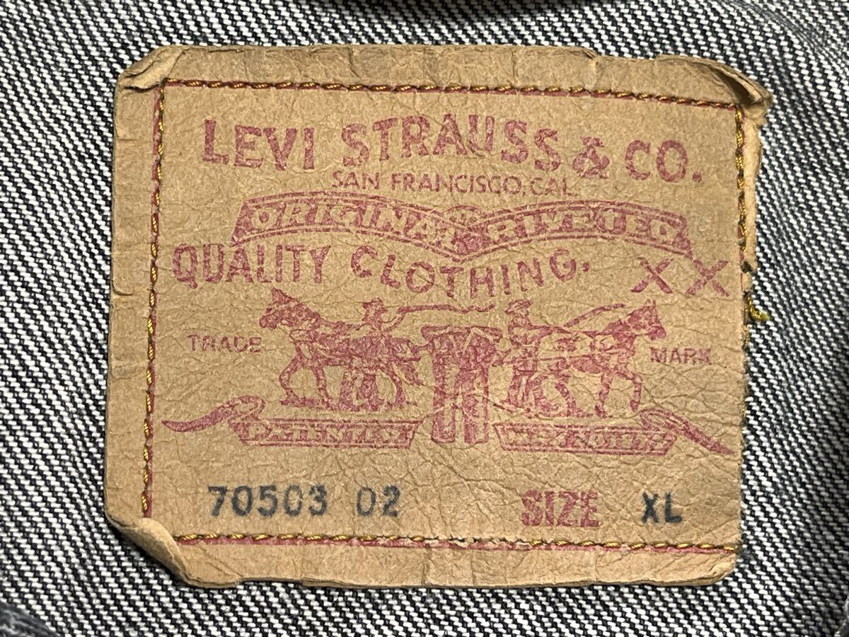人気の先染ブラックのリーバイス70503になります。裏地インク染み、袖にダメージあります。