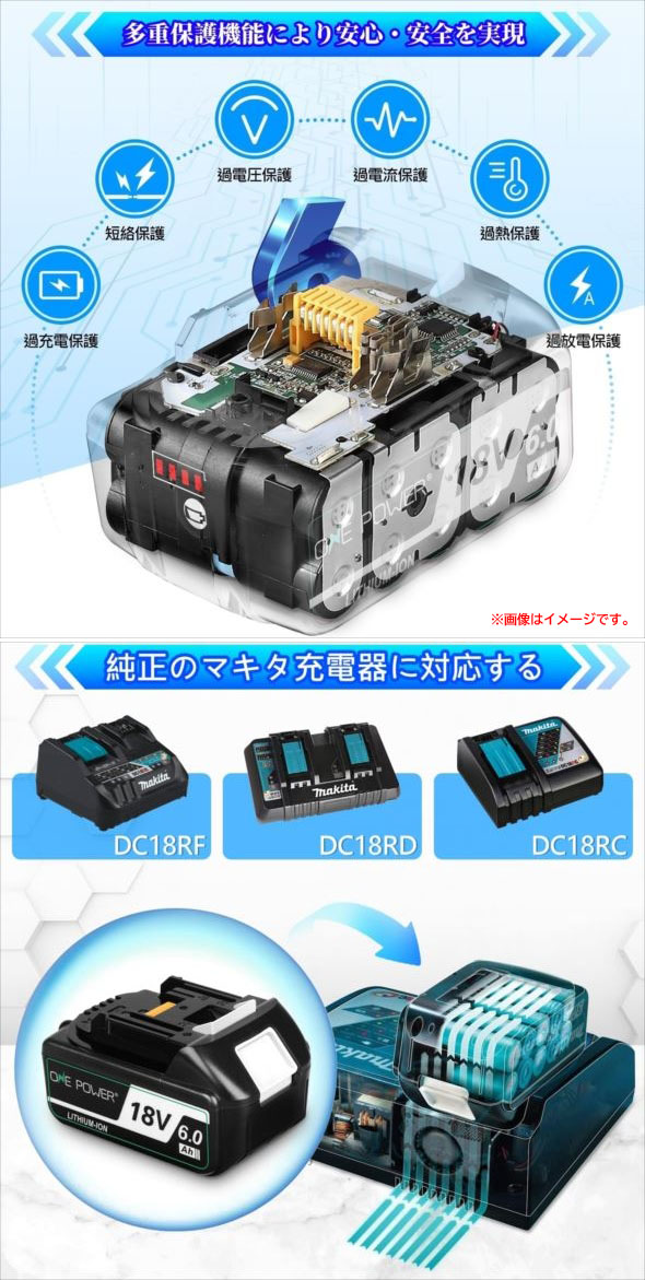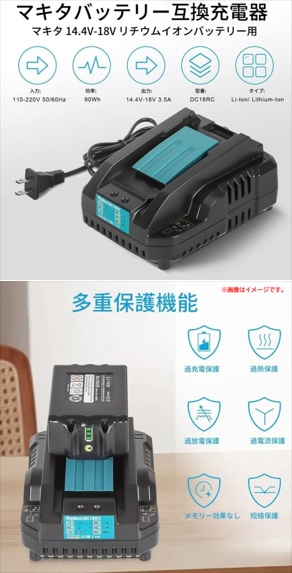 【商品特長】 ◆本製品の互換 マキタ 18V バッテリーは、防火材料を使用したシェルと、 安定性と長寿命を備えた電池セルを採用した改良モデルですので、安心してご利用いただけます。 ◆付属の充電器はDC18RCモデルで、14.4Vおよび18Vバッテリーに対応可能。 短時間で効率的な充電を実現します。さらに、定格3.0Ahに対応した正確な電流設計により、 安定性の高い急速充電を行うことができます。誇張のない実測値に基づいた性能で、 安心してご使用いただけます。また、DC18RFなどのマキタ純正充電器との互換性も備えております。 ◆(1)冷却設計:本体全体に冷却孔を配置し、高い冷却効果を実現。 (2)メロディー通知機能:充電完了時にメロディーでお知らせ。 (3)壁掛け対応:壁掛け可能な設計で、収納が簡単・便利。 (4)コンパクト&軽量デザイン:持ち運びや収納がしやすく、使い勝手抜群。 | |||||||||||||||||||||