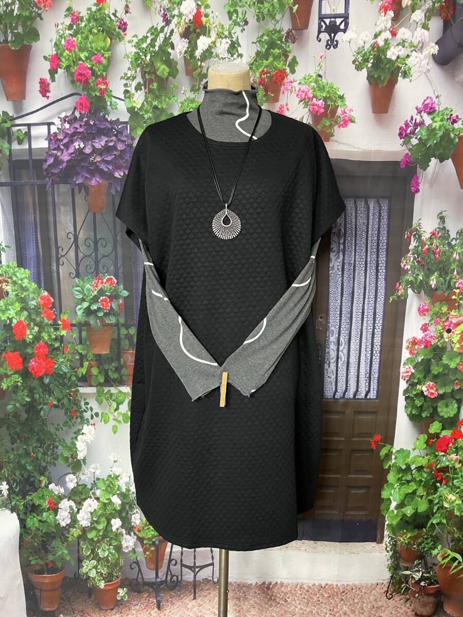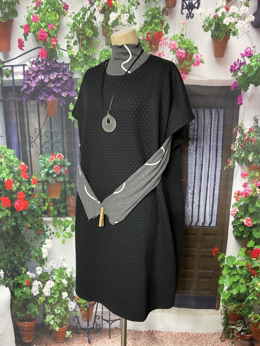 ★新品 でこぼこ 凸凹加工 ゆったりチュニック M~K(BK)