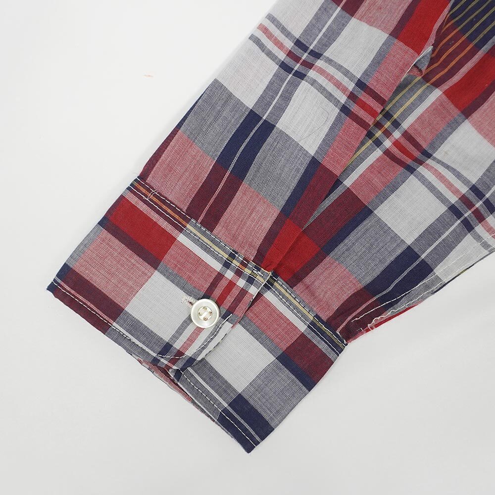 | ●コメント Montgomery Wardの看板ブランドとして知られるブレントの、60年代製のシャツを買い付けました。 襟はトップを外すと開襟・留めるとレギュラーカラーという2WAY仕様で、前立てや台襟が付かないミニマルな造りもポイントです。 細かな汚れや傷等は否めませんが比較的使用感の少ないおすすめの一枚ですので、是非この機会にご検討ください。 |