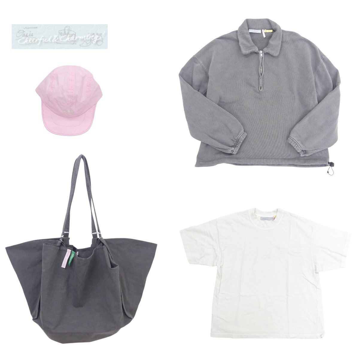 ①ピンク キャップ Aランク ②ライトベージュ Tシャツ M 着丈:72cm バスト:116cm A-クリーニング済 薄いしみがあります。 ③グレー スエットトップス M 着丈:63cm バスト:138cm 裄丈:78cm Aランク クリーニング済 ④グレー トートバッグ H38×W47(底)×D14cm 所々に汚れあり A-所々に汚れあり |