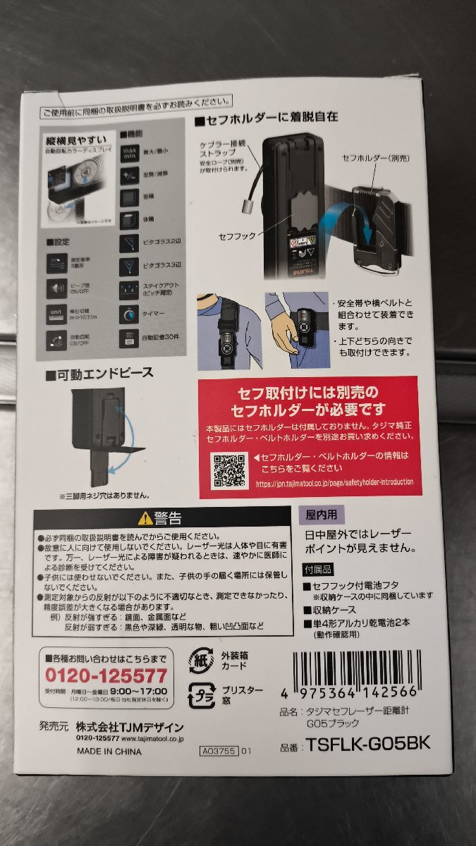 | TAJIMA セフレーザー距離計G05 ブラック TSFLK-G05BK 未使用品 |