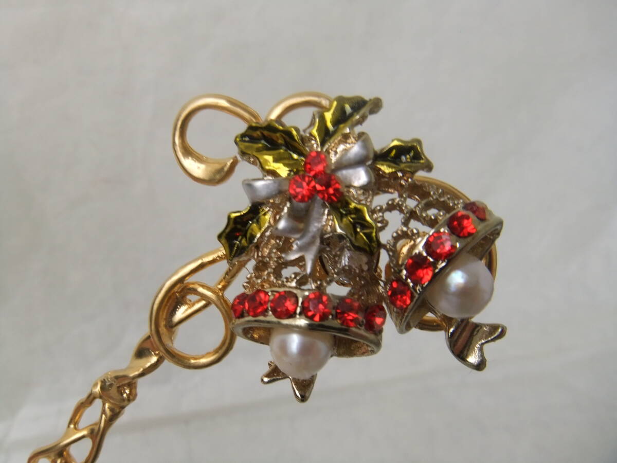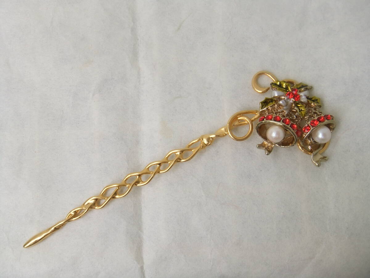 照りの良いあこや本真珠をあしらったきらめくラインストーンのジングルベルが楽しいクリスマスを演出してくれそうなかんざしです。