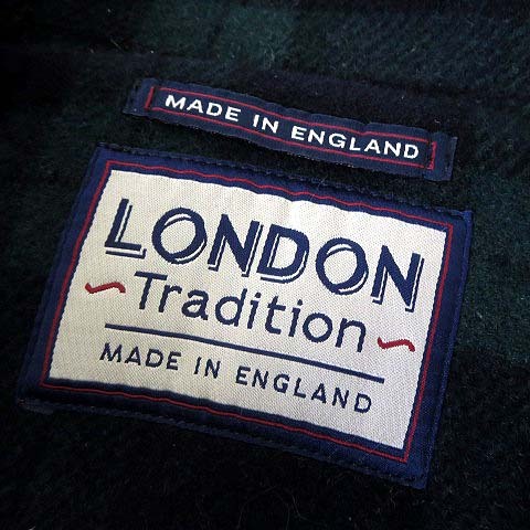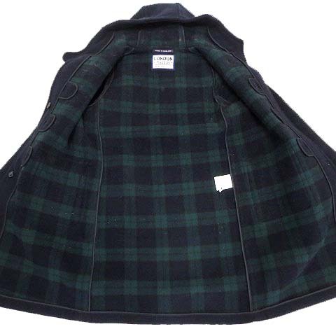 ロンドントラディション LONDON TRADITION イングランド製 コート ダッフルコート メルトン ウール フード 裏ブラックウォッチ柄 M 38 紺