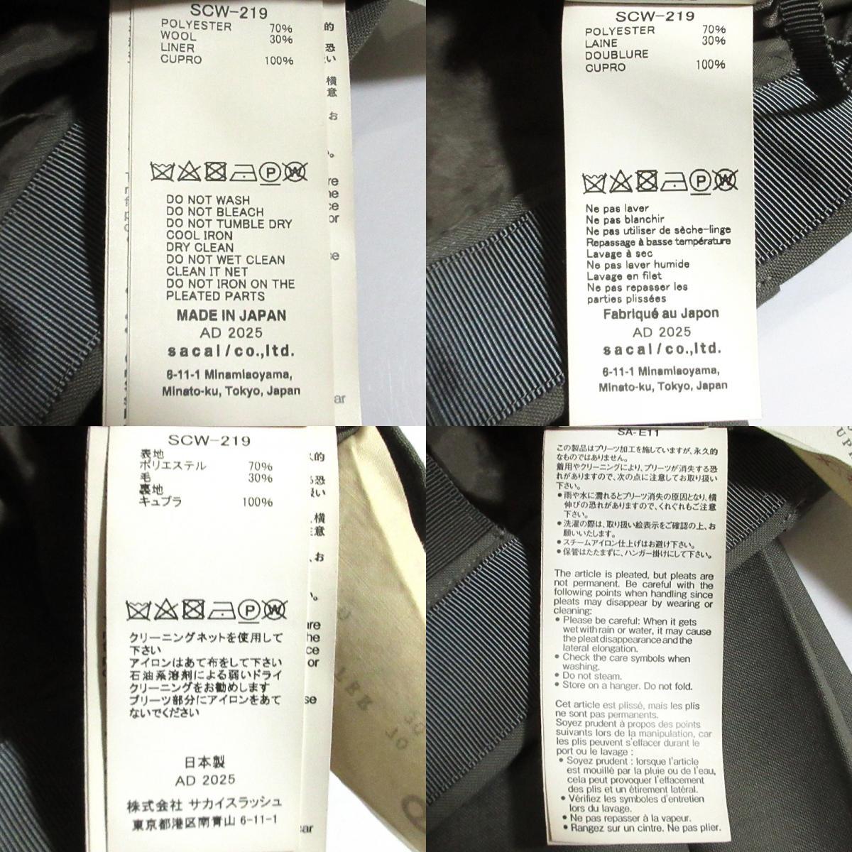美品 AD2025 Sacai サカイ Suiting Skirt スカート SCW-219 サイズ3 カーキ