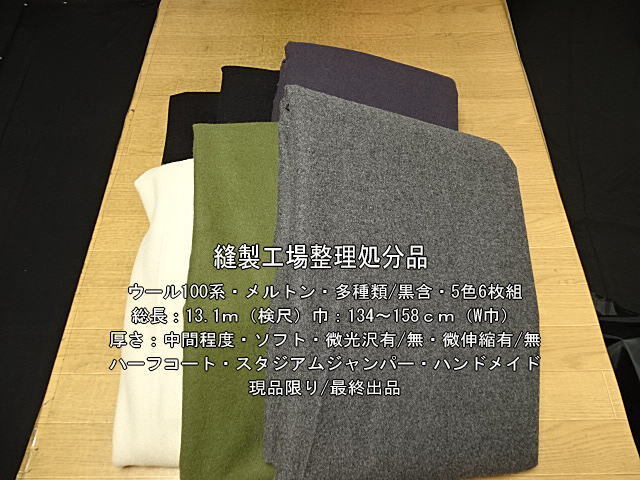 | ウール100系 メルトン 中間 多種類/黒含 5色6枚組 13.1m | |