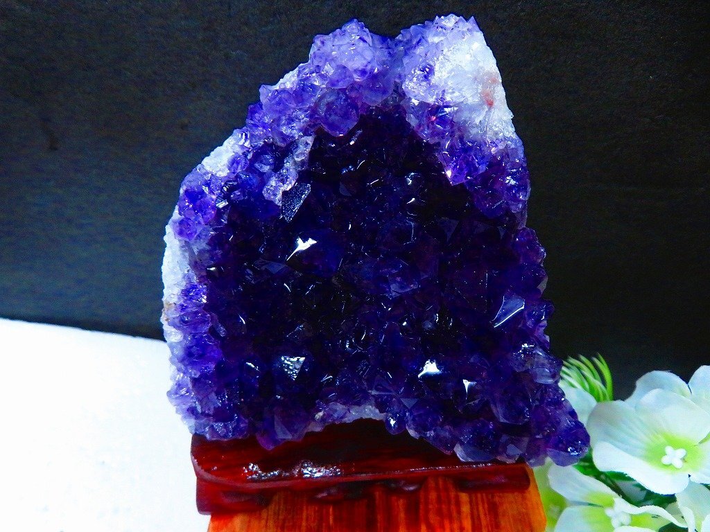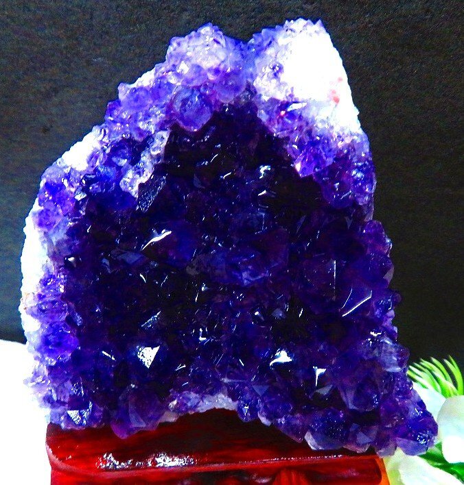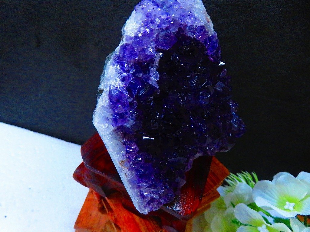 | ★(台座合わせて)商品重量:約1.11kg ★(台座合わせて)商品サイズ約:170mm*130mm*100mm アメジストは紫色をしたきれいな水晶です。そして紫のパワーストーンはたくさんありますが、その中で最も透明度が高いとされているのがアメジストです。 アメジストは調和と調整をもたらす愛の守護石で、心に平和をもたらし、感情を鎮める力があるため、心の安定をはかる効果があると言われています。アメジストの紫色は「情熱の赤」と「冷静な青」が混ざった色なので、冷静であり積極性を兼ね備えた色とされています。 恋愛中にはただ情熱的に突っ走るだけではなく、冷静に物事を判断できるので、正しく落ち着いた判断ができるとされます。また、恋愛成就の効果もあり、真実の愛を守る石としても知られています。厄除けや恋愛だけではなく、前向きに生きていたい人に人気のある石です。 アメジストの象徴である紫色は日本だけでなく、世界各国で身分が高い人が身につける色としても知られています。宗教的な儀式に使われるなど、高貴な色であった紫色は神秘的でスピリチュアルな色であるとされています。 そして、アメジストを持っていると隠れた才能を開花させることができるとのことで、クリエイティブな仕事をしている人に好まれています。 アメジストの語源はギリシャ語の「酒に酔わない」という意味を持つ言葉です。そのため、悪酔いしないような効果がある魔除けのお守りとして考えられてきました。 古くはキリスト教で司教の指にアメジストの指輪がはめられたり、ユダヤ教でもアメジストを胸に飾るなどしていました。日本でも聖徳太子が紫色を冠位十二階の最高位の色にするなど、歴史の中で高い価値を示していたのが紫色のアメジストでした。 現在でも、玄関にアメジストを置くと魔除けになると信じられ、泥棒が入らないとも言われています。このようにアメジストは、パワーストーンとして魔除けや恋愛成就、心の安定をもたらしてくれる石として人気がある石なのです。 アメジストの特徴 | |||