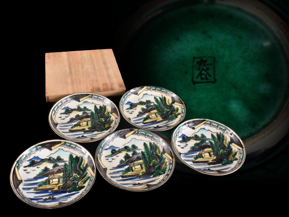 | 商品名 | 【雲】某資産家買取品 古九谷 色絵 山水風景図 皿 5客 直径12㎝ 箱付 古美術品(懐石料理道具 銘々皿 青手)AY6356 OThuyt |