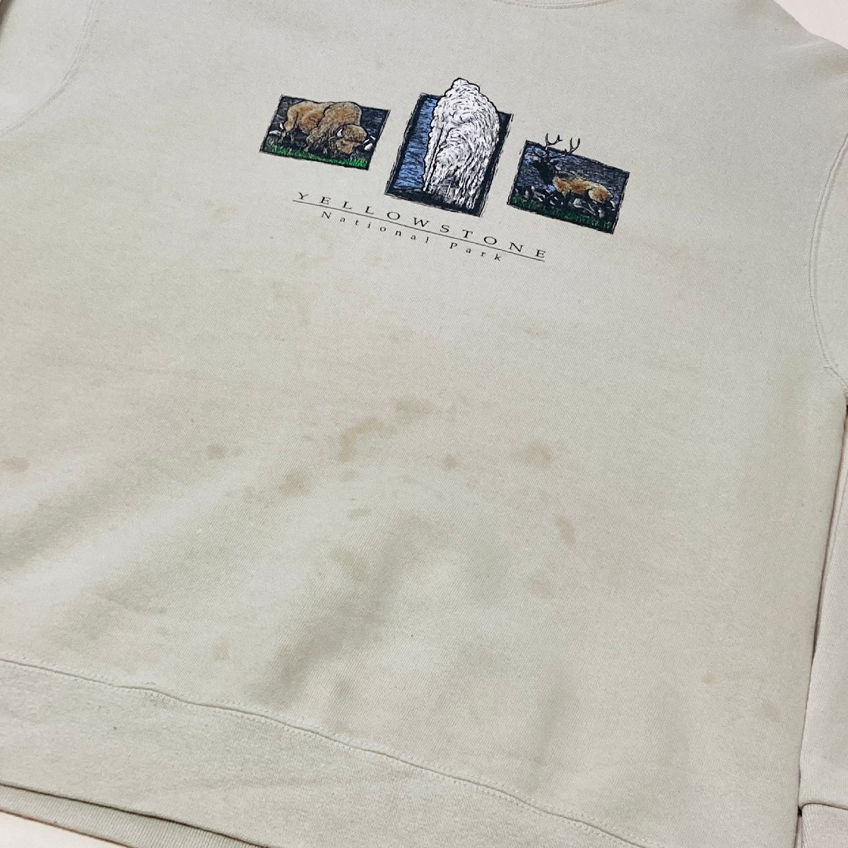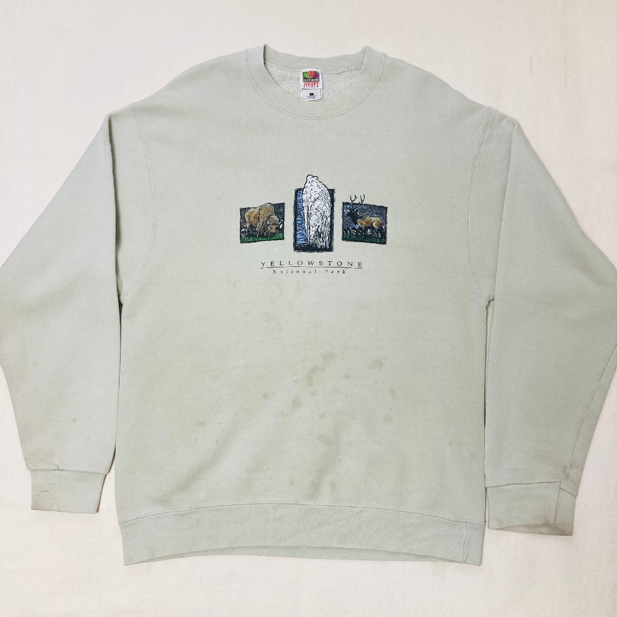 YELLOW STONE National Park プリント トレーナー ベージュ系 L【FRUIT OF THE LOOM】