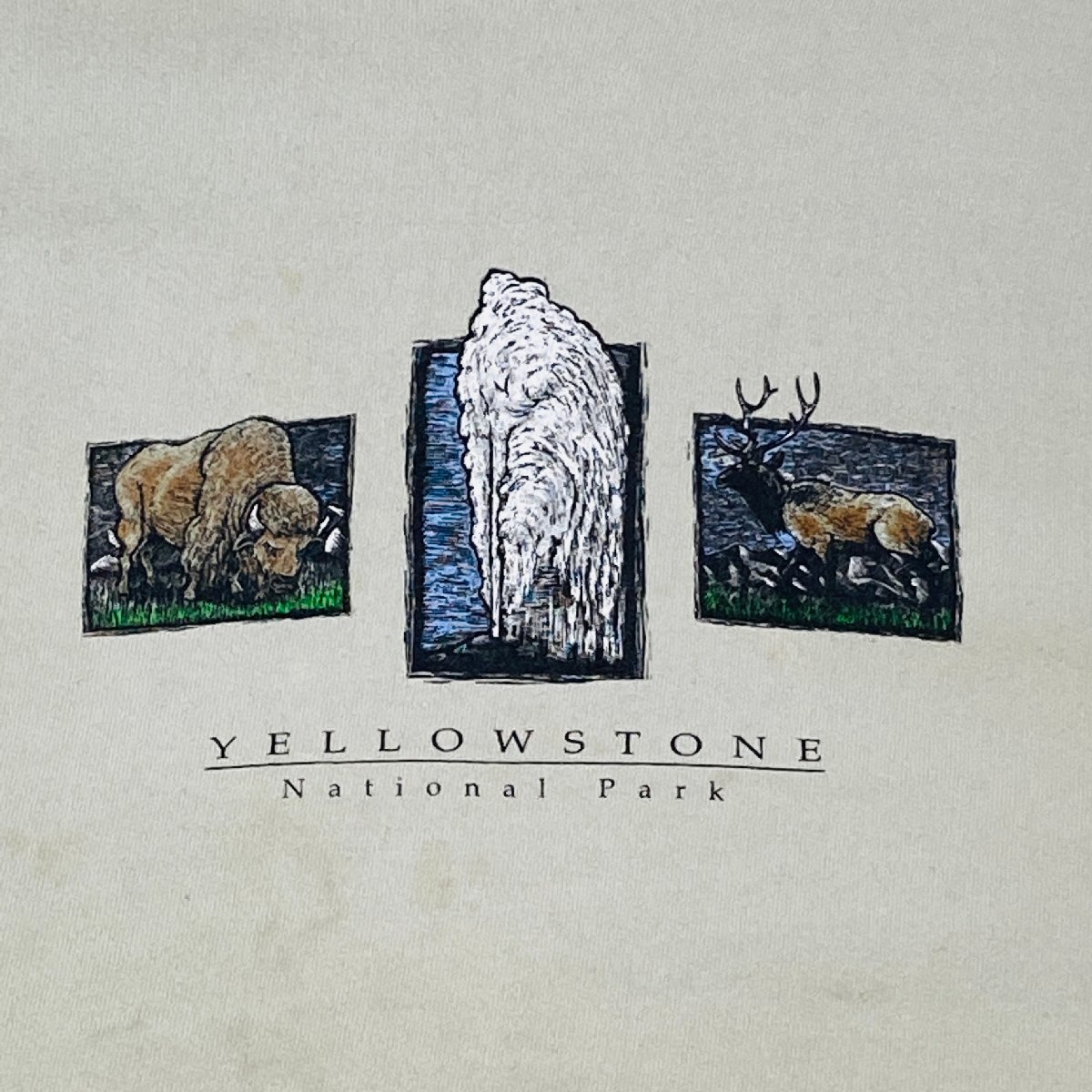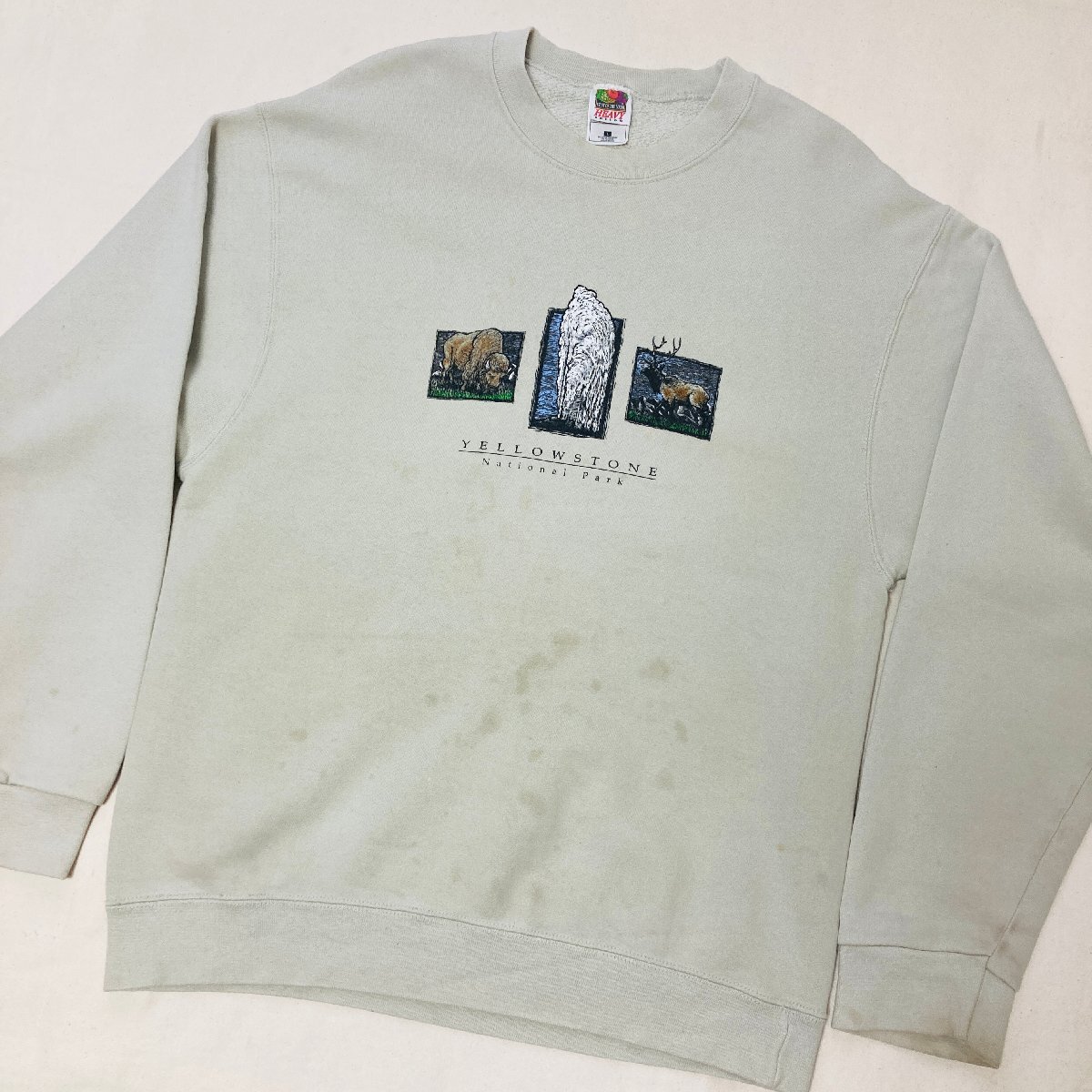 FRUIT OF THE LOOM YELLOW STONE National Park プリント トレーナー ベージュ系 L