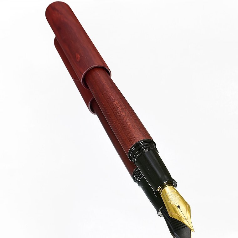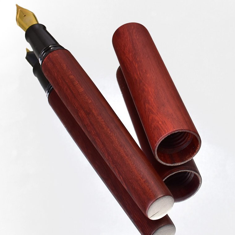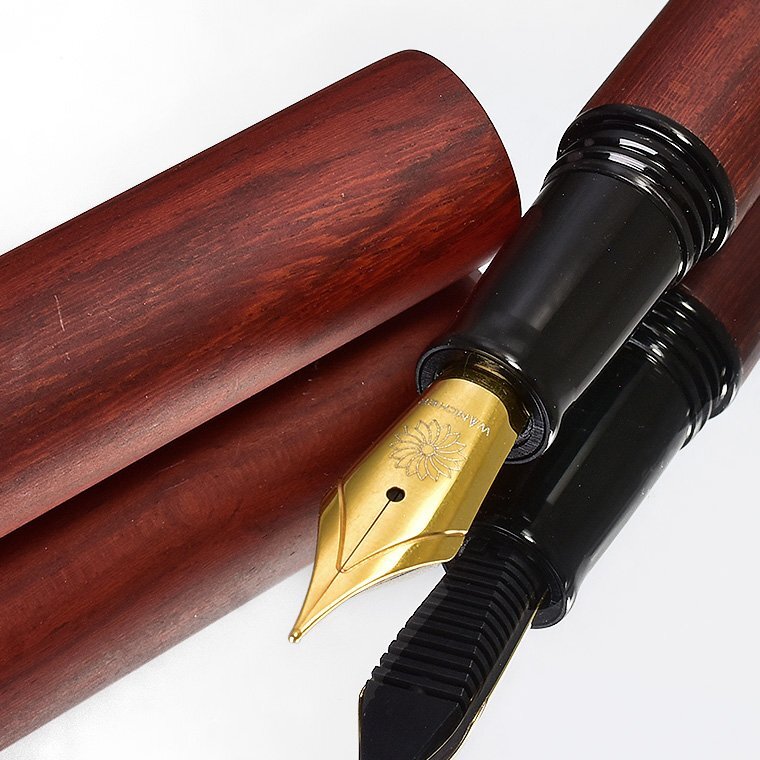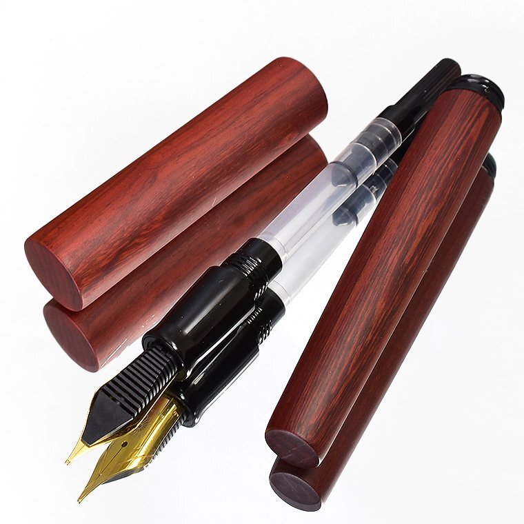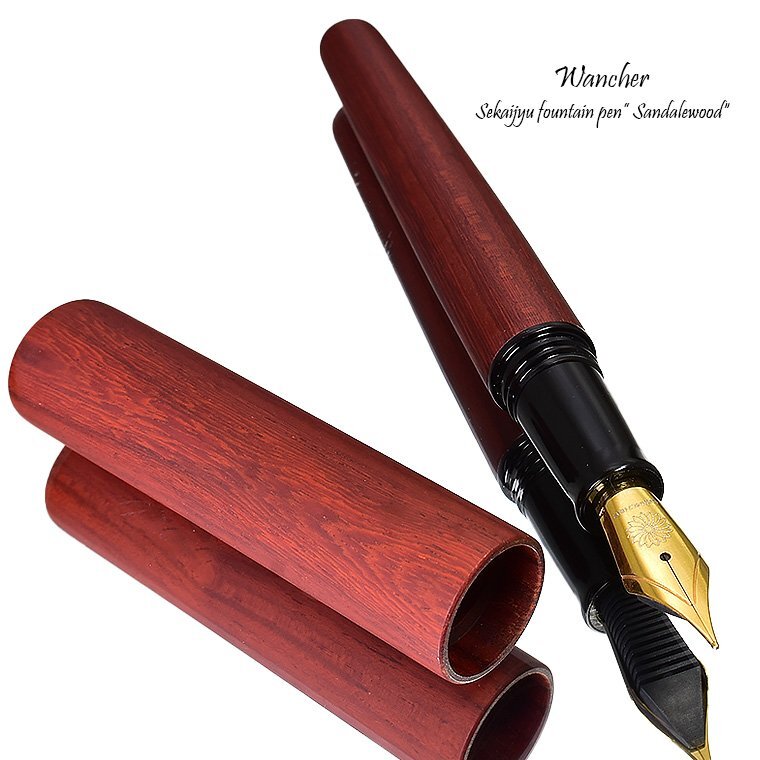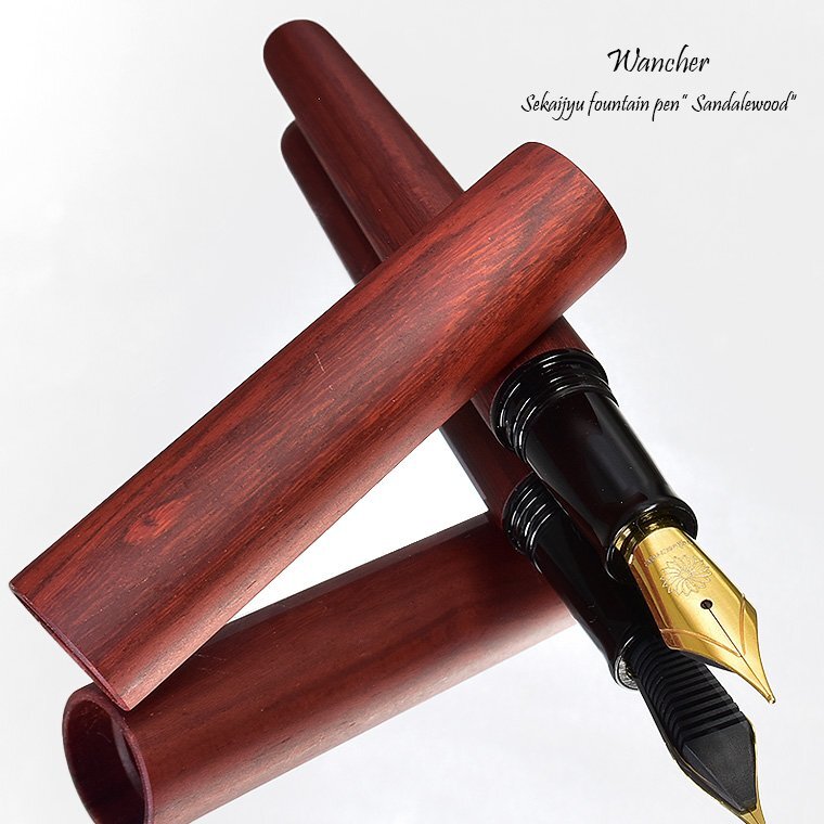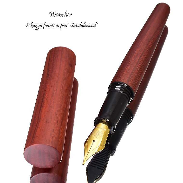 | 【Wancher/ワンチャー】 世界樹万年筆 サンダルウッド F 細字 新品未使用 ・天然木を使用しておりますので色の出方に 若干のムラ/スレがございますが天然木の 特性としてご理解の上、入札ください。 お買得な1円~今回出品させていただきます ※画像は参考画像のため、実物ではございません。 ![]() 世界樹(せかいじゅ)とは、インド・ヨーロッパ、シベリア、ネイティブアメリカンなど あちこちの国々で語られるの神話の中に登場する木のことです。 世界中が、一本の大きな木で繋がっているというもので世界樹は天を支え、 天界と地上、さらに根や幹を通して地下世界もしくは冥界に通じているという神話です。 世界中に同様の神話が存在します。世界が一つにつながり平和でありたいという思いは、 遠い昔から世界共通なのだと感じます。 WANCHERは、世界中が垣根なくつながり、平和になることを願って世界樹という、 世界の木々を材料とした、万年筆を作りました。 ![]() この、「世界樹万年筆」を生み出したのは、台湾の山の中にこもって、 木の彫刻を作り続けている洪明華氏の協力があってこそでした。 工業機械を使わず、原木から木製万年筆を縦に削り出すことにより 美しい形状の万年筆を作り出してきた、彫刻家洪明華氏の協力の元 この万年筆は生まれました。 もちろん、木を材料とし、NC旋盤を用い、同じ形状の万年筆を 複数作り出したいので手伝ってほしいとの申し入れを、 彼は簡単に受け入れてはくれませんでした。 一本一本自然の木の形状を見ながら、木を削り、世界に一本しかない 木製万年筆を作ってきた彼には、工業旋盤で単一の製品を作ることには 大きな抵抗がありましたが、美しい木の万年筆を、アートではなく、 芸術性の加わった製品として、多くの人に触れて使ってもらうという 全く新しい取り組みとして、受け入れてもらいました。 彼が作り出した形状を基に工業NC旋盤を用い、横回転転する、 木棒からの削り出しによる木製万年筆製作を試みました。 旋盤を用いることで、同様の形状のモデルを複数作り出すことが可能となります。 もちろんそれには、木工旋盤加工には、熟練した職人の技術が必要となります。 彫刻家、木材加工職人など、様々な方の協力のもと生まれたのが、この「世界樹万年筆」です。 ![]() キャップとボディの直径ロ長さ、エンドの絞り、手になじむ大きさとデザインのバランス、 今まで目にしてきた万年筆とは、ちょっと異なります。 均整とアンバランスが、自然の中の木々の枝のように存在します。 一本の木の棒なのに何故か惹きつけられるのは、そのためです。 木の質感と美しい形状を、指先から伝わる感触で楽しんでほしい。 そのために、一本の木の塊から、時には大胆に時には繊細に、丁寧に形状を削り出す 作業が、何度も繰り返されました。そして完成した、誰もがふと手に取りたくなる造形。 表面は細かなヤスリで徹底的に研磨され、 硬い木独特のシルクのような滑らかな感触に仕上げられます。 薄く墨を流したような木目の模様。自然が生み出す美です。 ![]() 今回出品させていただくのはのは「白檀/サンダルウッド」です。 サンダルウッドは日本では「白檀(ビャクダン)」の名で親しまれており、 扇子やお香の原料などに使われてきました。 高級な香木の心材から抽出されるエッセンシャルオイル(精油)も有名です。 ![]() 万年筆は、書くための道具です。 決して見た目のために使用感をおろそかにすることは許されません。 キャップは気持ちよくボディエンドに刺さり、ちょっと短め?と思われる軸は、 筆記するのに最適な長さとバランスになります。 (短めといっても、国産メーカーの万年筆の軸と同等サイズです) ちょっと書くときは、キャップを外してサラサラッと書き、じっくり書くときは、 エンドにキャップをつけて、ゆったり書かれると良いかと思います。 ![]() ペン先は6号サイズと呼ばれる大型のニブです。 素材はステンレスになりますが、 近年のステンレスペン先の書き心地は良好で筆圧の強めな方にもお薦めです。 また、大型ニブと相まって抜群の書き味を誇ります。 是非、使うほどに愛着が増していく木の万年筆を手にしてください。 ![]() ****************************************************** ≪商品詳細≫ 品名 【WANCHER/ワンチャー】世界樹万年筆 サンダルウッド 出品個数 :1個 素材 :サンダルウッド(白檀) ペン先 : スチール ドイツ製JOWO社 サイズ : F(細字) 機構 : カートリッジ/コンバーター両用式 *コンバーターは欧州規格 長さ : 約142mm 径 : 約16mm(最大径)/10.5mm(最小径) 重さ : 約22g キャップ:ねじ込み式 付属品 : WANCHER紙ケース・コンバーター内蔵・カートリッジ3本 参考価格 :10,000円(税込11,000円) 新品未使用 *天然木を使用しておりますので、素材の木目の出方や色味には個体差がございます。 また木材独特の僅かな凹凸や傷の様に見える木目や薄いスレがなどがある場合が ございます。製品の特性としてご理解下さい。 またキ