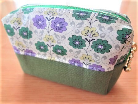 *ハンドメイド*リバティ*Cordelia/グリーンラベンダー*コーデリア*中ポーチ*