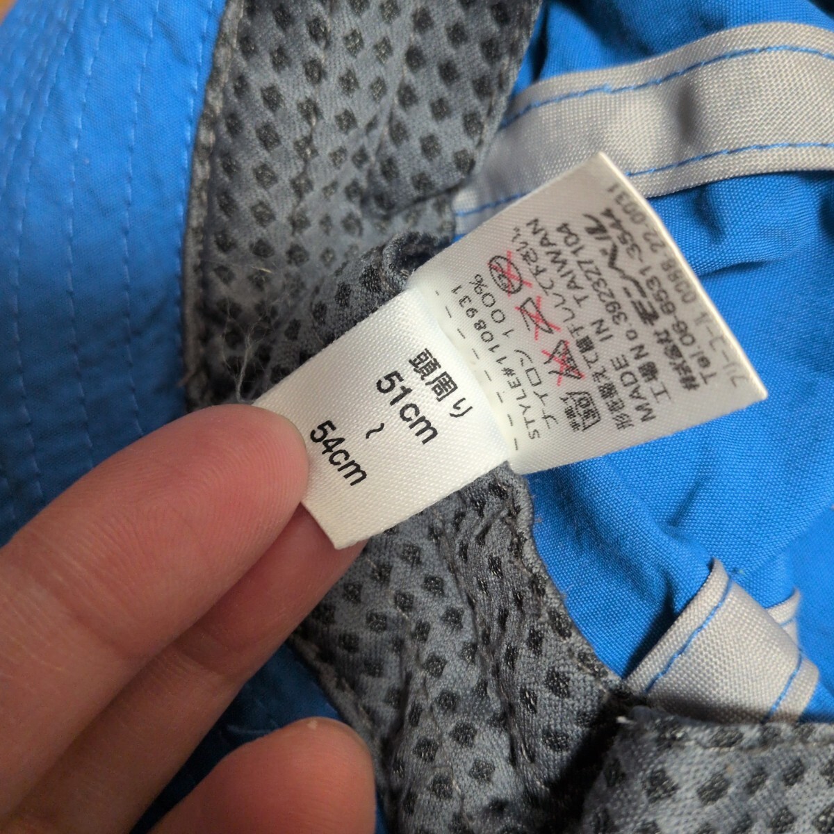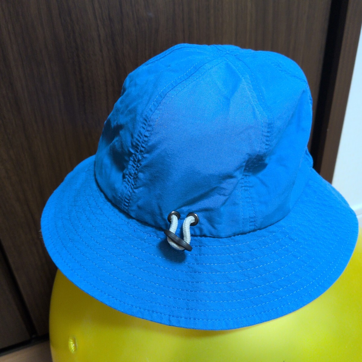 フリーサイズの青いバケットハット、軽量で通気性に優れたデザイン。
