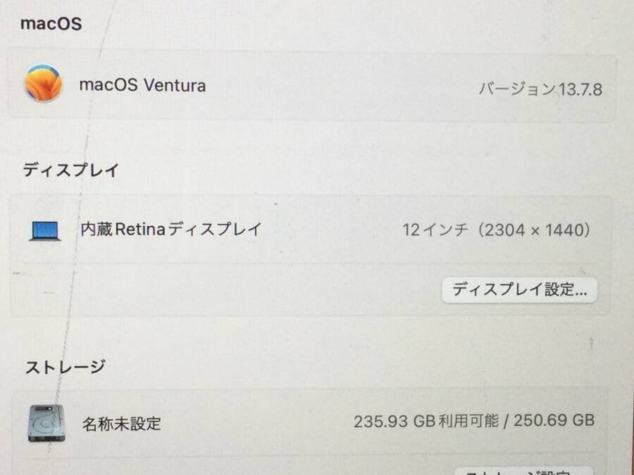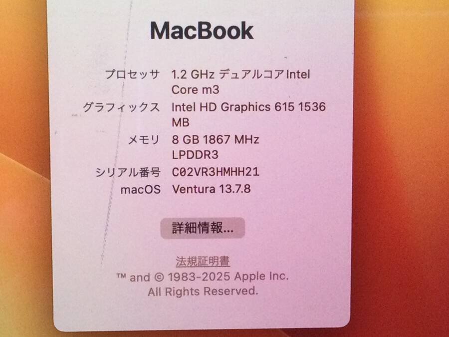 Apple MacBook A1534 macOS Core M3 1.20GHz 8GB 256GB(SSD)■一部保証品