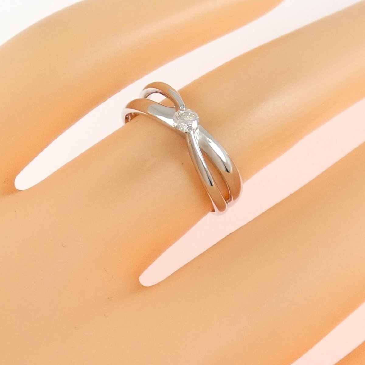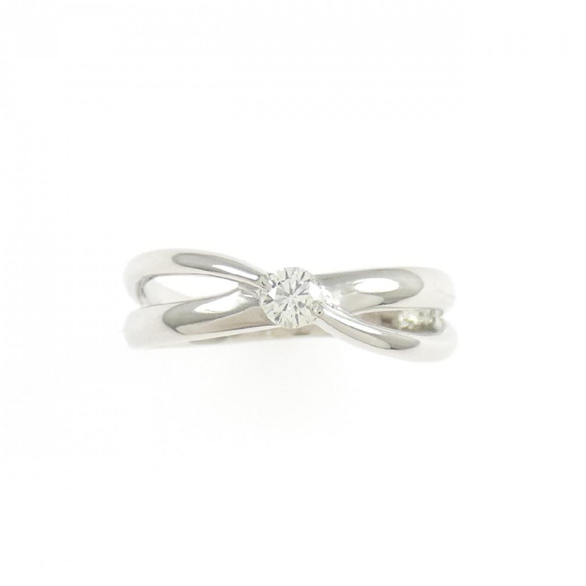 なめらかなアームが交差するデザインに、ダイヤモンドが凛とした輝きを放つソリティアリング。指元にモダンで洗練された印象を与えます。