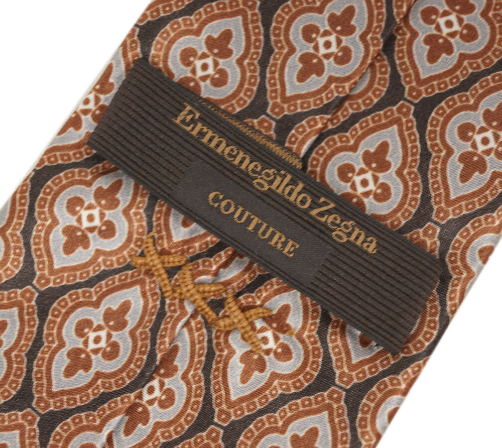 ゼニア ブランド ネクタイ エルメネジルド・ゼニア Zegna 高級 シルク 100% ローシェンナ ブラウン ブラック 茶色 黒