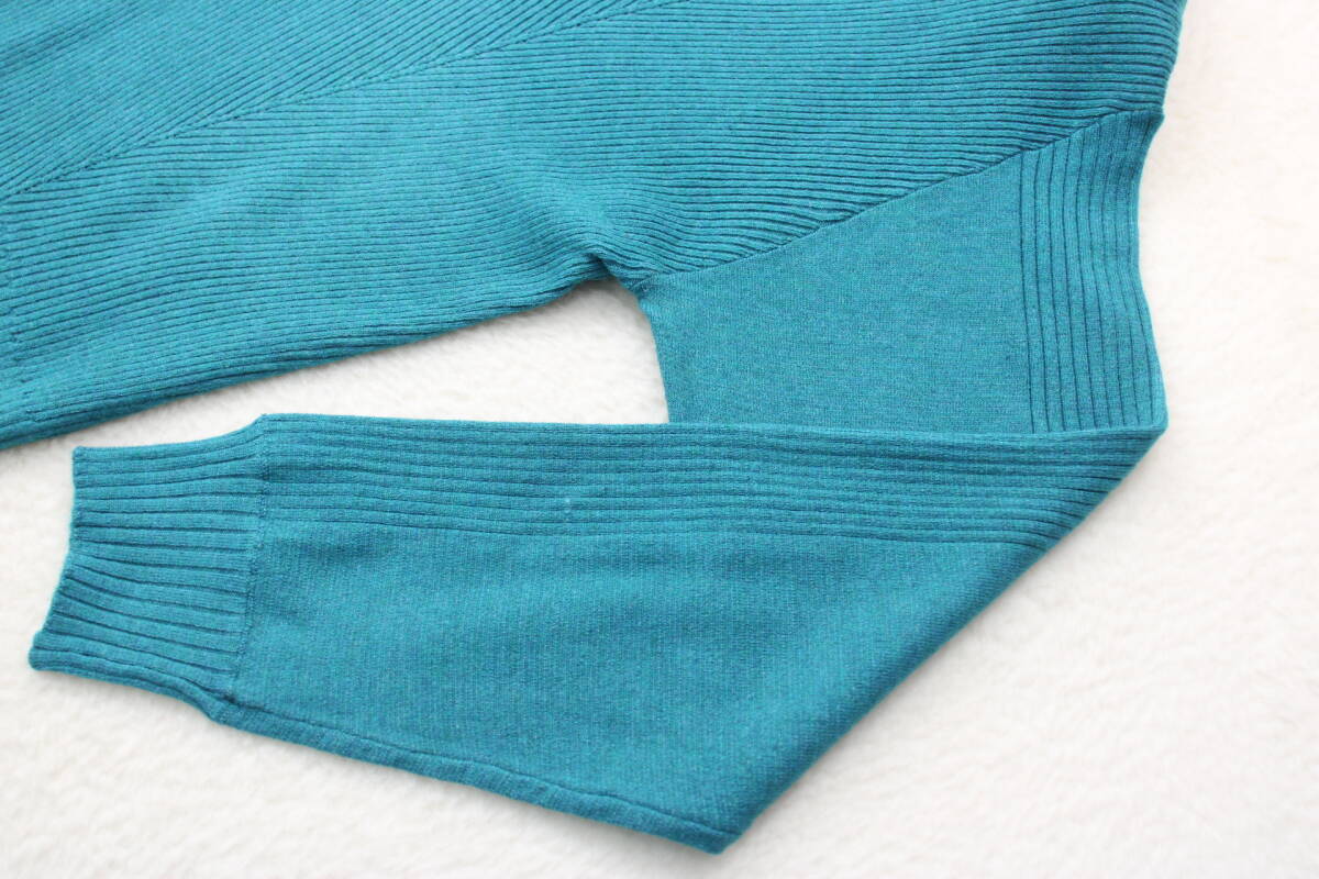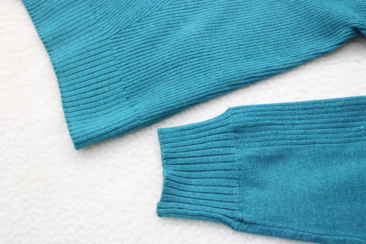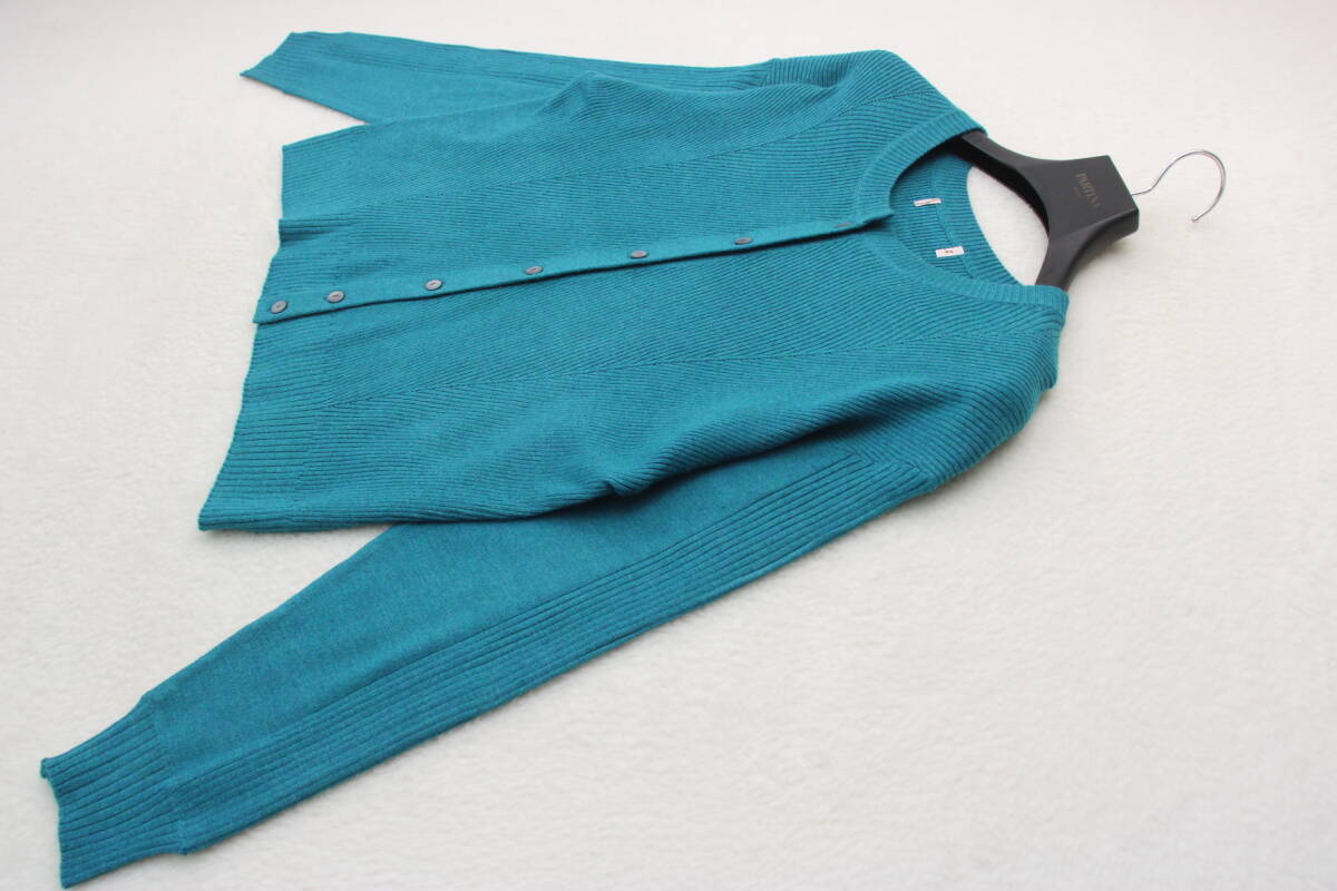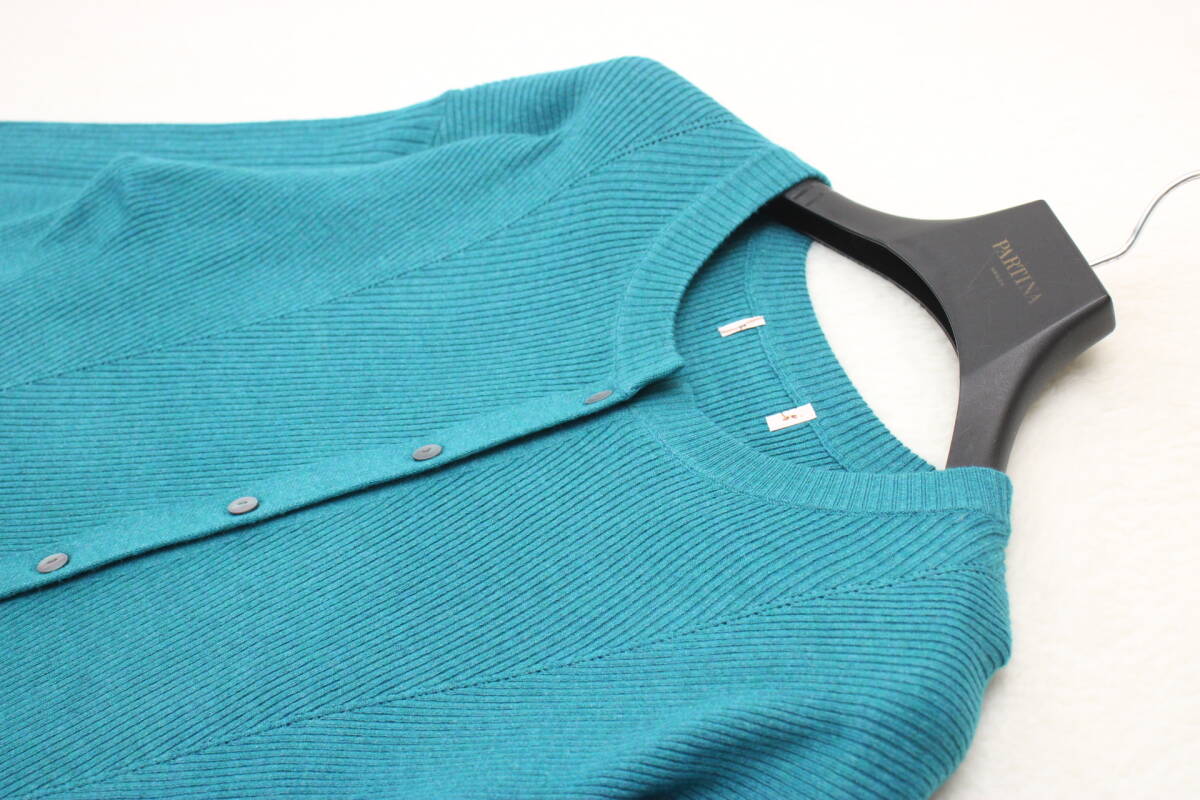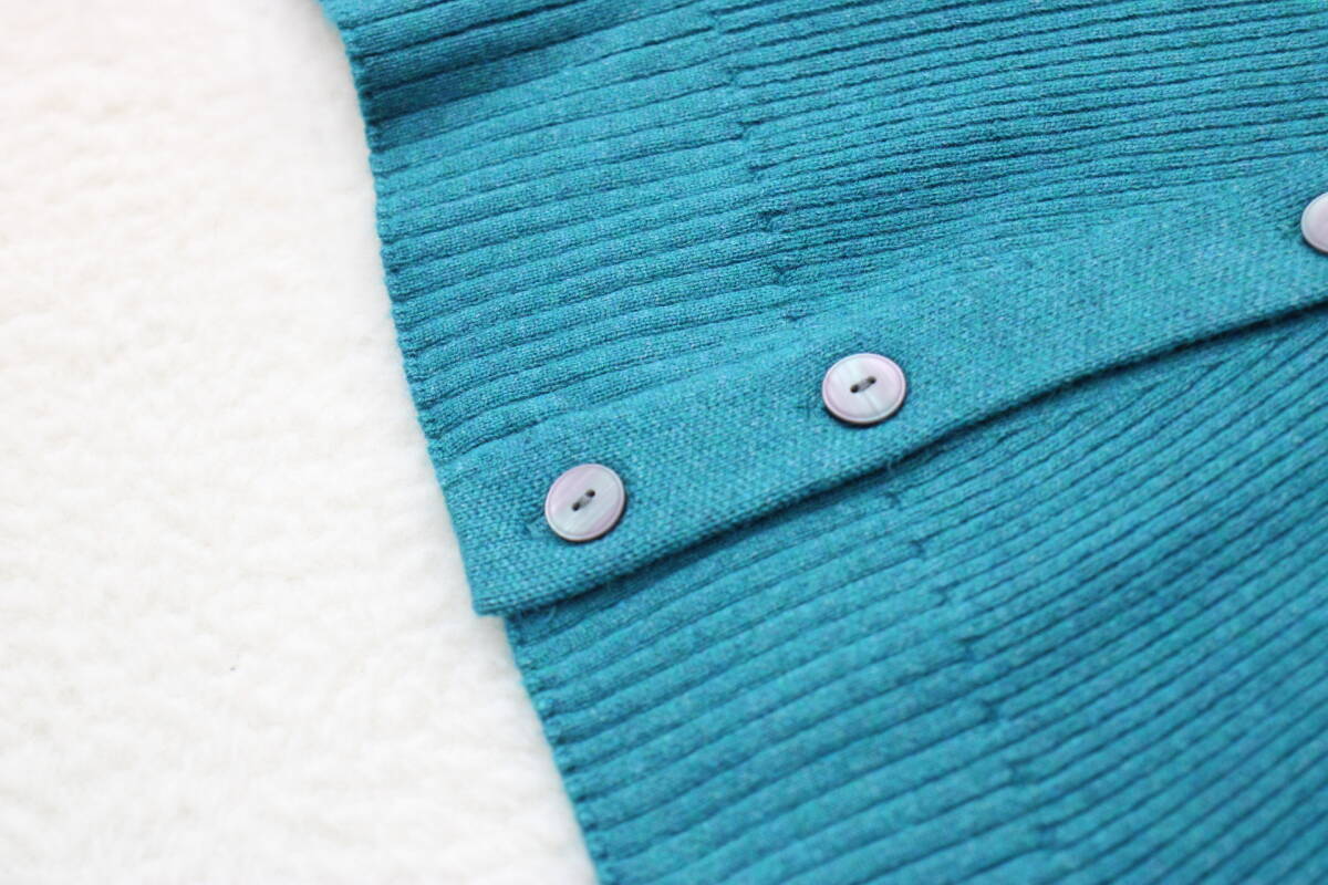 6419 新品 リブ切替ニットカーディガン レイクブルーM~Lサイズ