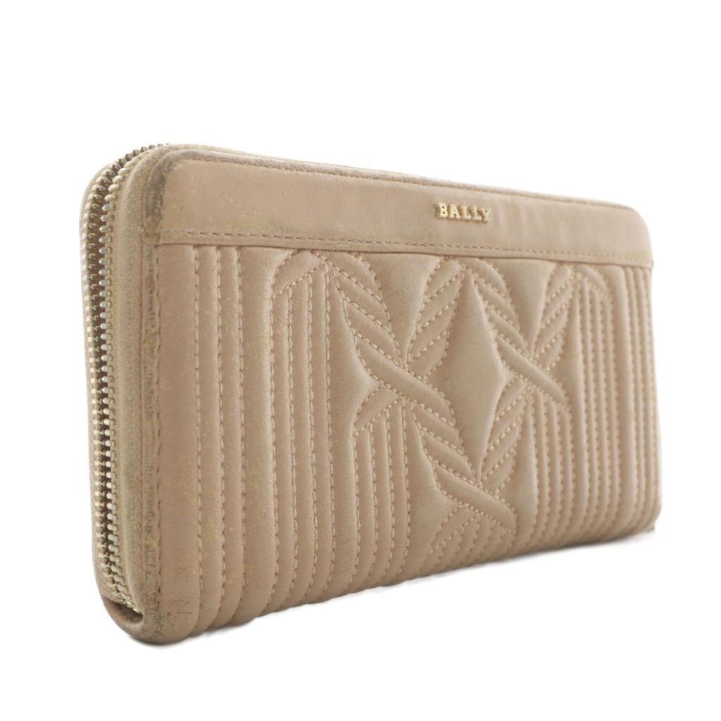 バリー BALLY 長財布 レザー ラウンドファスナー ステッチ 総柄 ロゴ ピンク /XZ ■GY18 レディース