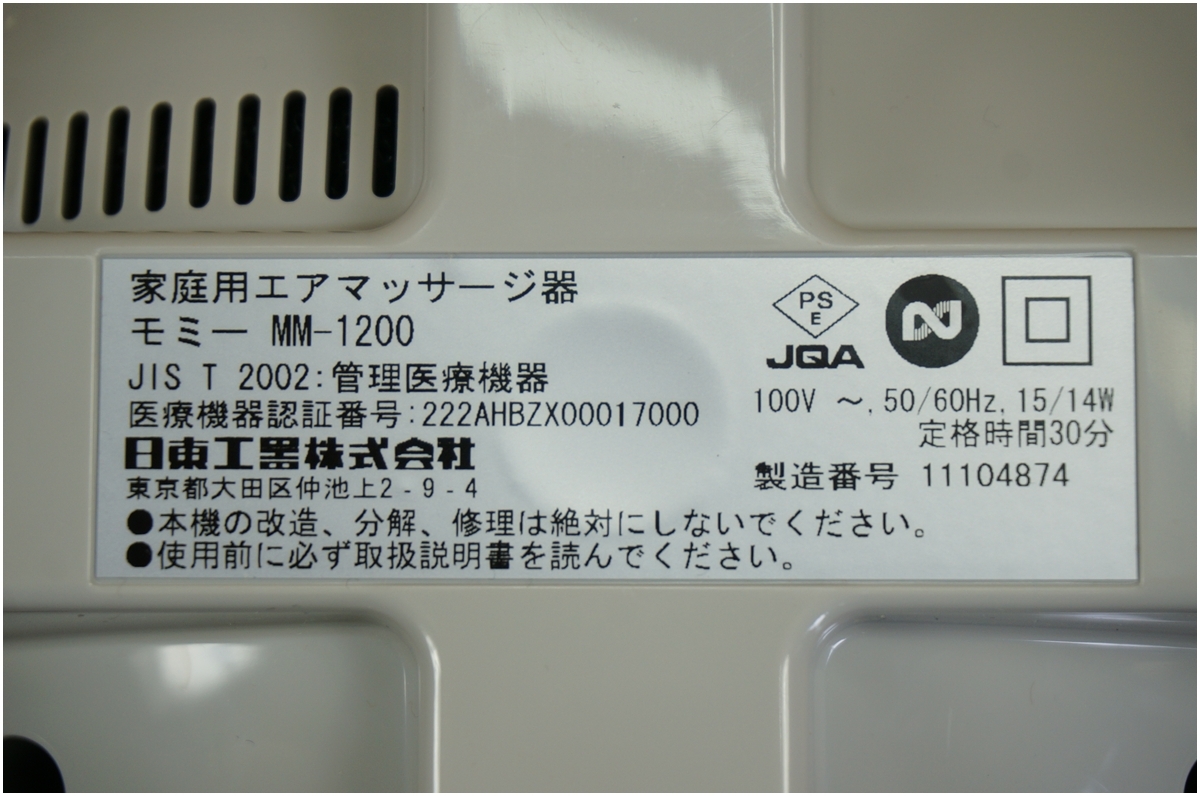 【極美品】 日東工器 ★ 家庭用エアーマッサージ器 ★ フットマッサージャー モミー ★ momy MM-1200