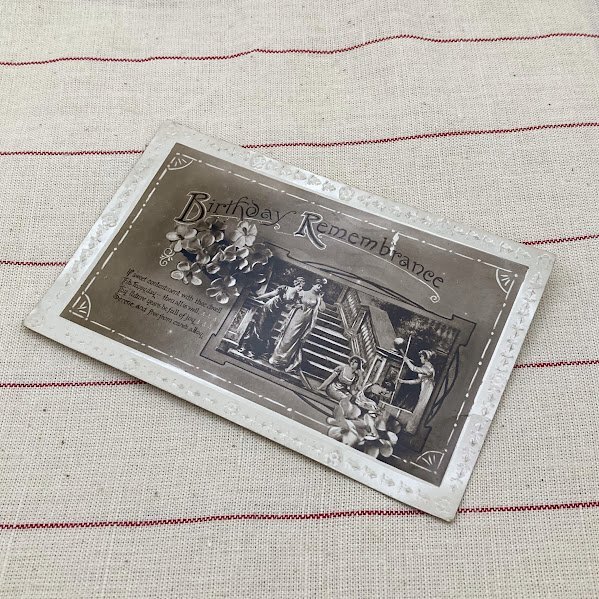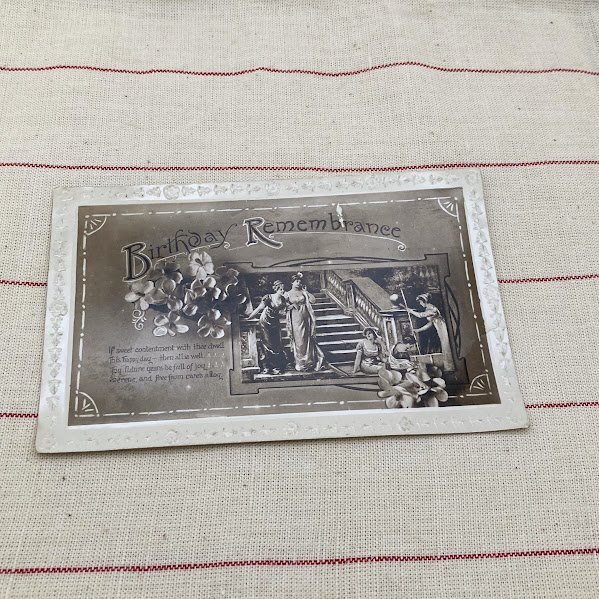 フチにエンボス加工を施したバースデイカード【44-CDC】かつて大切な人に向けたカードは心が暖かくなりますね。素敵なデザインはお部屋のインテリアや撮影小物などにおすすめ。セピア色のインクが時の流れを感じさせてくれる1枚です。福岡市南区の店舗にてお渡しもできますのでお気軽にどうぞ!