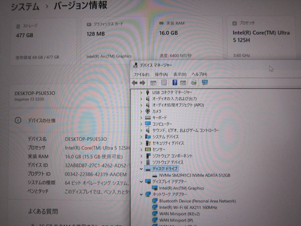 DELL Inspiron 13 5330 Core Ultra 5 125H/16GB/SSD512GB/13型QHD+液晶(2560×1600)/Windows11/wi-fi6/第11世代デルノートパソコン