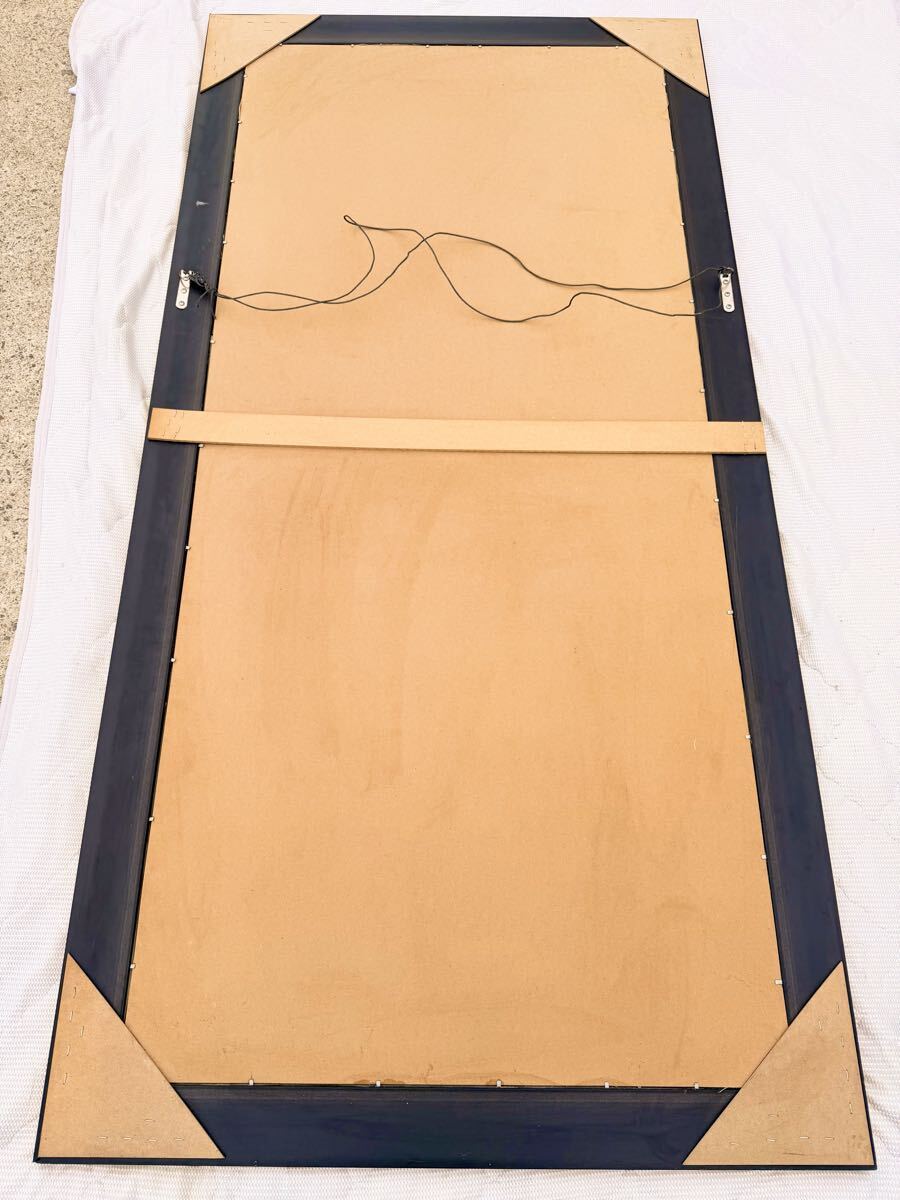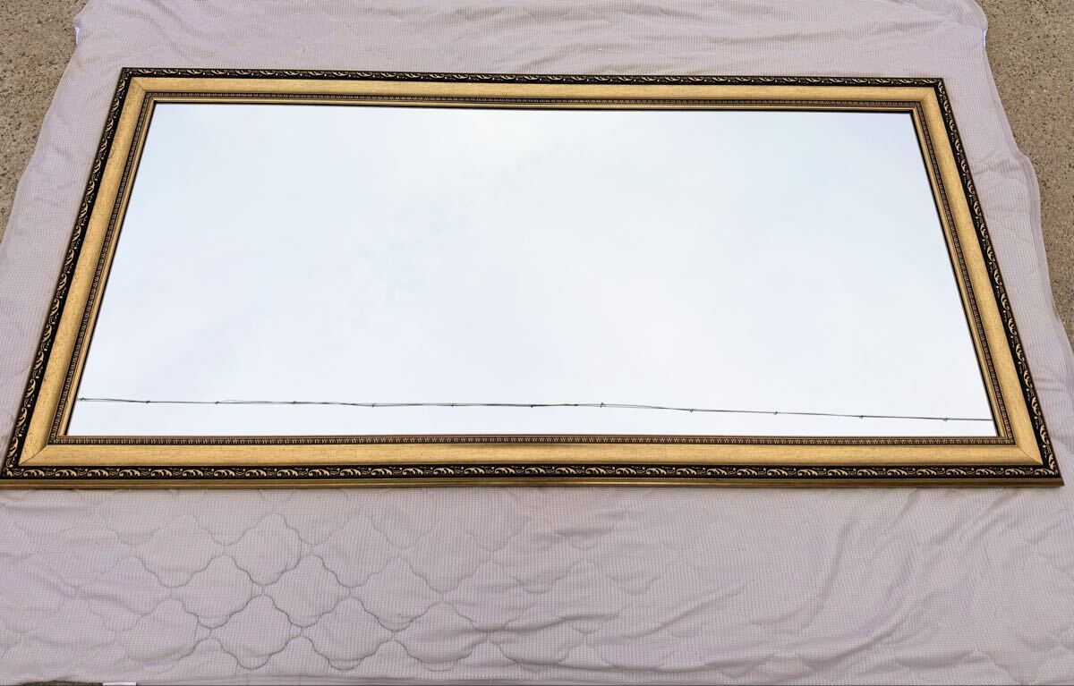 ゴールドのフレーム装飾でシンプルながらも高級感を感じます。壁掛けや立て掛けて全身鏡としてお使い頂けます。