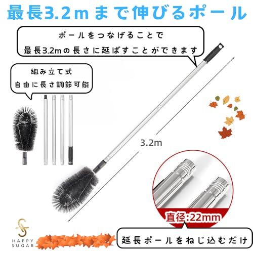 【簡単に最長3.2mまで伸びる延長ポール】ポールをつなげることで最長3.2mの長さに延ばすことができます。掃除したい場所が高い位置でも、ポールを簡単に延長するだけで手軽に届きます。延長ポールをねじ込むだけなので、誰でも簡単に使用できる点が大きな魅力です。