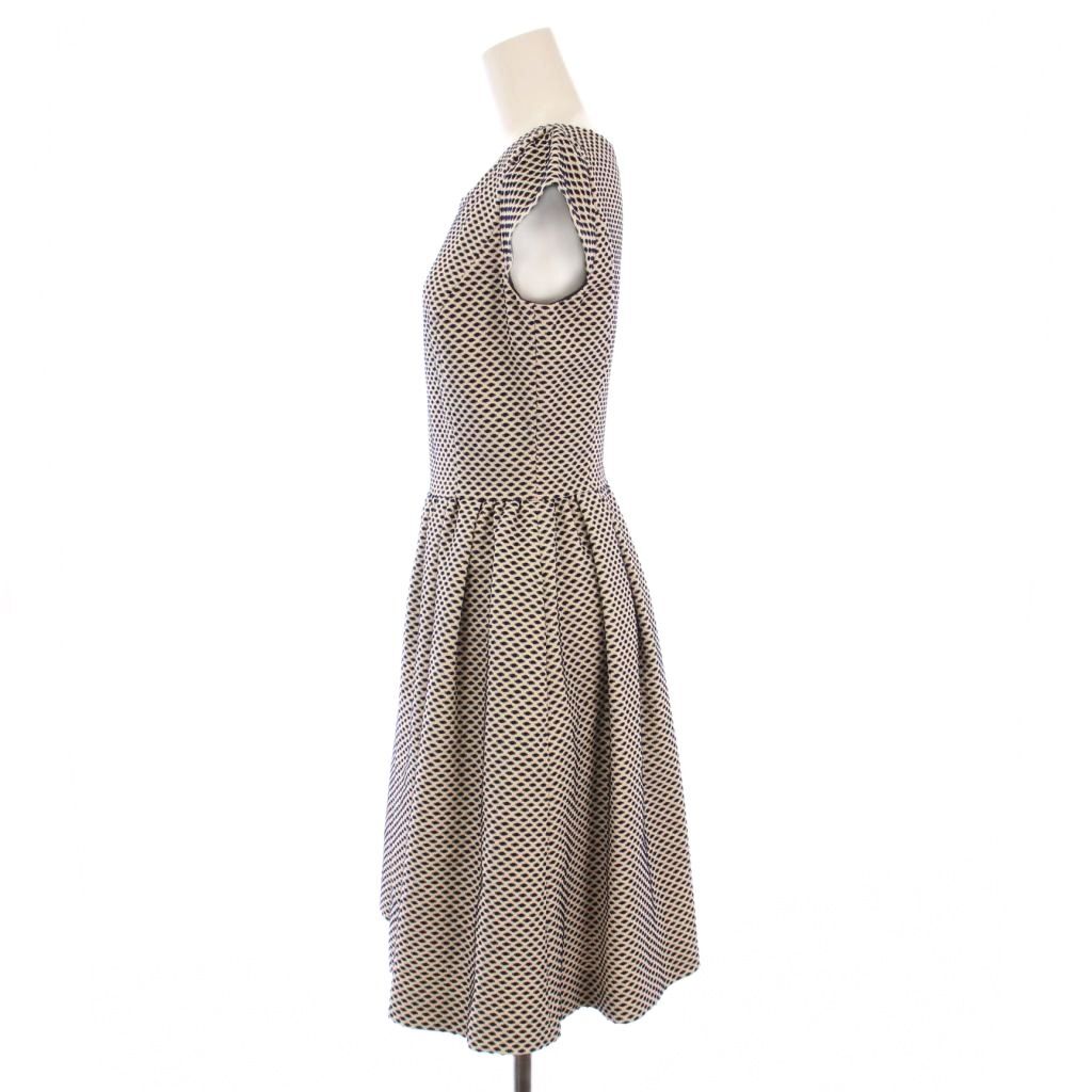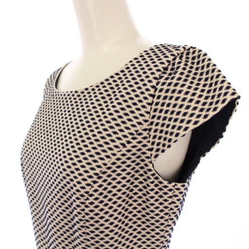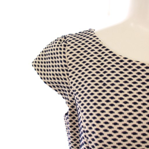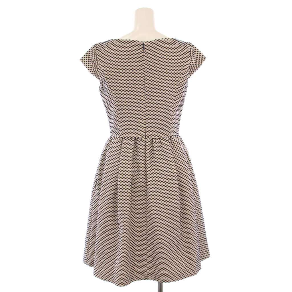 トッカ TOCCA フレアワンピース ひざ丈 半袖 クルーネック 総柄 0 アイボリー 紺 ネイビー /BB レディース