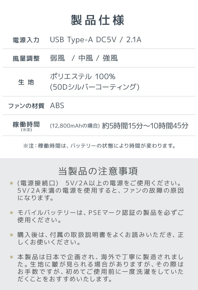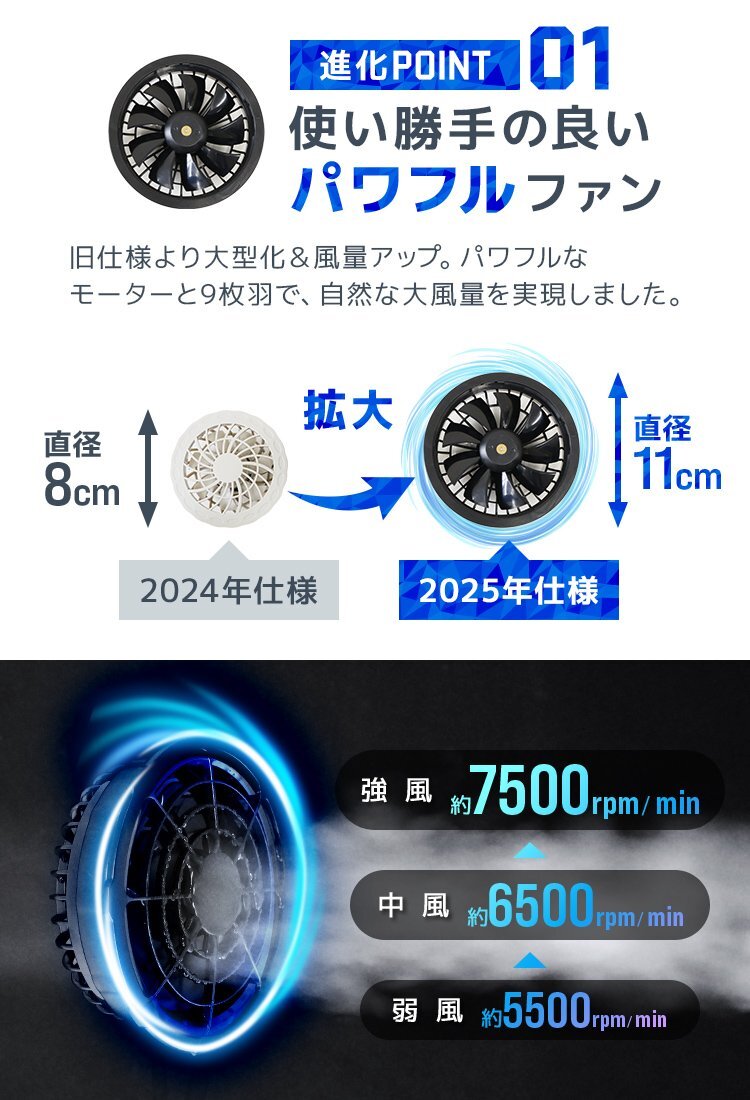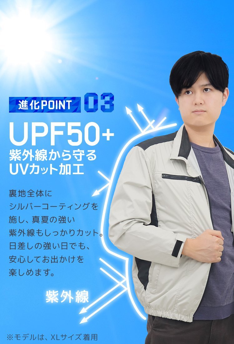 \最大7500rpmの大風量ファン/ 夏場の屋外作業やレジャーに最適な空調作業服が登場! 背面に内蔵されたファン付きウェアで、効率よく体内の熱を逃がし、長時間の活動を快適にサポートします。 3段階風量調節機能で、お好みの風量にカスタマイズ可能。 三段階の切り替えで、状況に合わせた涼しさを実現。 強風送風モード搭載で、炎天下でもしっかりと風を感じられ、熱中症対策にも。 作業着でありながらおしゃれなデザインで、現場はもちろん、アウトドアやガーデニングにもぴったり。 UVカット素材を採用しており、紫外線から肌を守ります。 背中には保冷剤ポケット付きで、さらに涼しさを追求!冷却効果がアップし、爽快な着心地。 【商品仕様】 カラー:サンドベージュ サイズ:XLサイズ 内容:作業ウェア、ファン×2、ケーブル、日本語取扱説明書 電源入力:5V/2.1A 風量調節:3段階 稼働時間(約):《弱》10時間45分/《中》6時間30分/《強》5時間15分 素材:ポリエステル100% 【注意事項】 ・5V/2A以上の電源をご使用ください。5V/2A未満の電源を使用するとファンの故障の原因になります。 ・購入後は付属の取り扱い説明書を確認してからご使用ください。 ・商品は、モニターによって色合いが異なって見える場合があります。 ・仕様・デザインは改良のため予告なく変更することがあります。 |