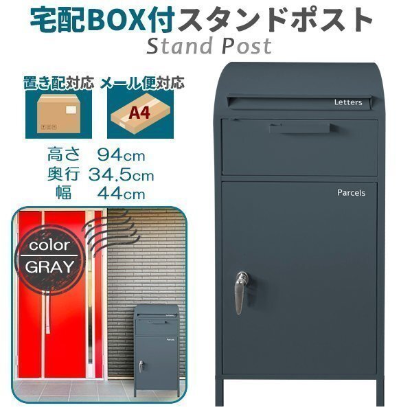宅配ボックス 一戸建て用 おしゃれ ポスト一体型 大容量 郵便受け 置き型ポスト 郵便ポスト スタンドタイプ 鍵付き グレー