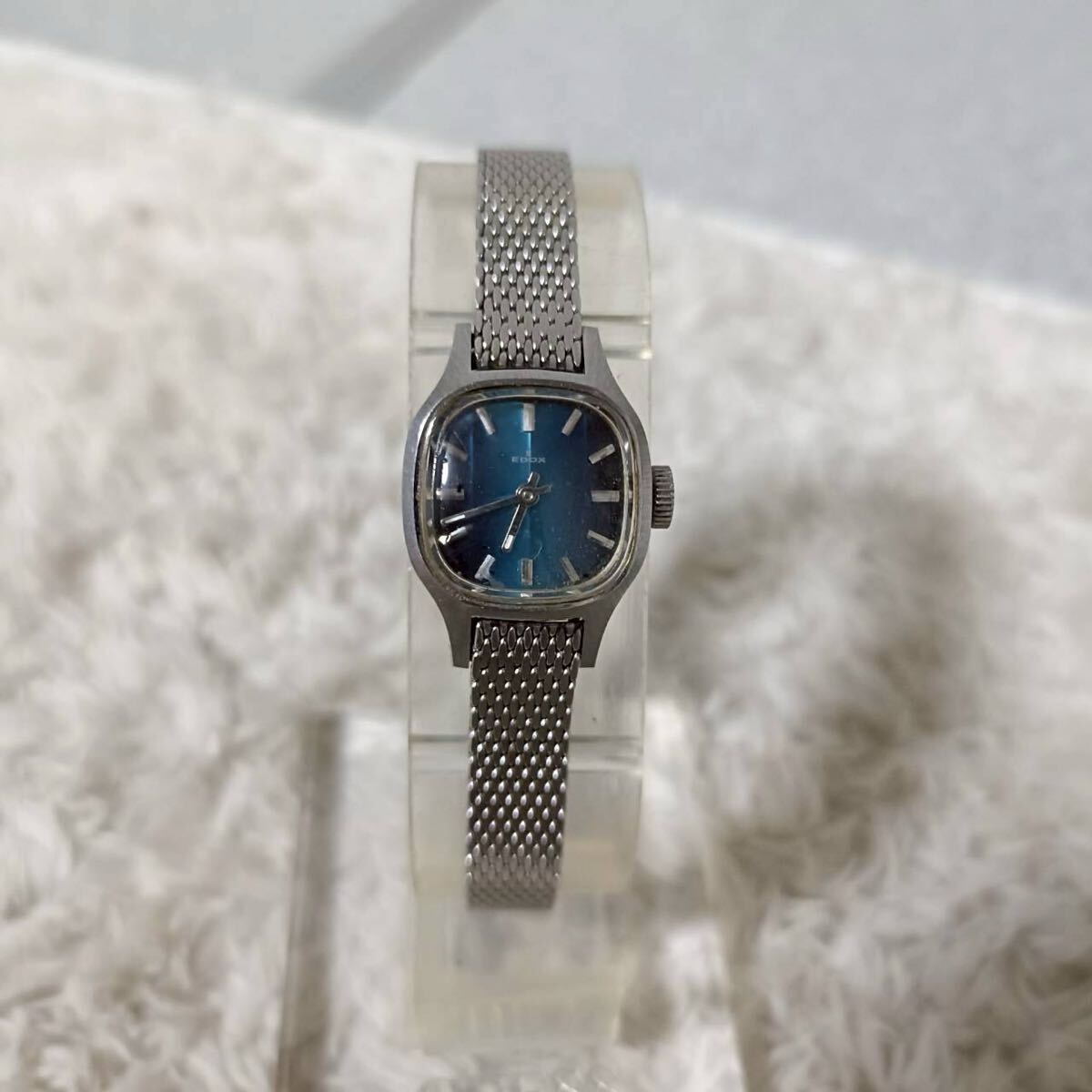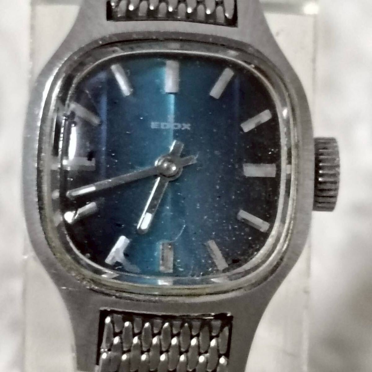 エドックス EDOX レディース 手巻き 腕時計 ブルー文字盤 アンティーク 稼働品 昭和レトロ