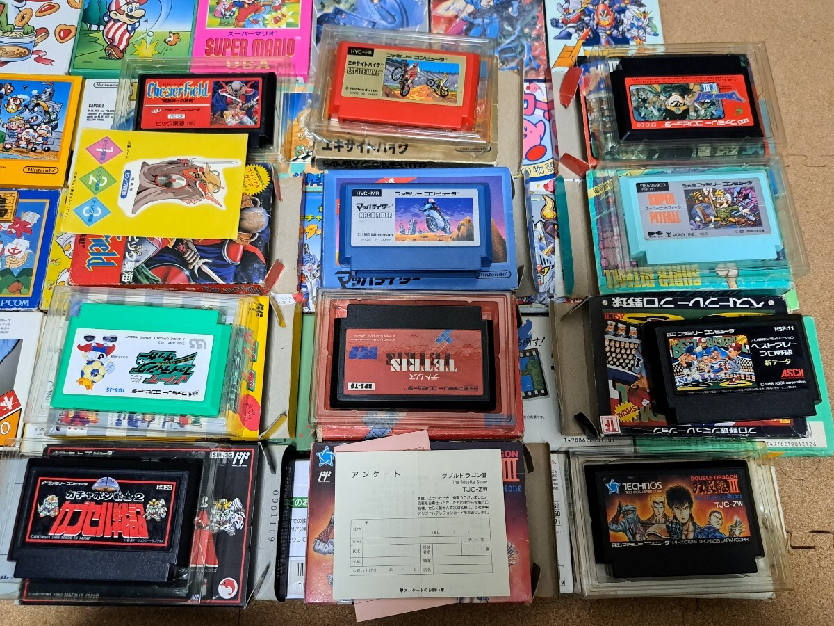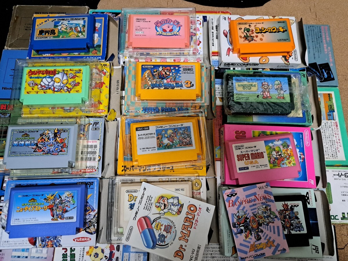状態は様々なので「やや傷や汚れあり」にしてます。開封写真は枚数に限りがあるので比較的人気が高そうなもを選んで撮っています。箱とソフトのみで説明書は入っていません。おそらくダブりなしだと思いますが多少の見落としや数え間違い、ソフト違い、付属品違いやそれらの欠品があるかもしれません。一部中箱プラケースの無いものや記名、書き込み、破れ、汚れ、日焼けもあるかもしれません。細かなチェックはしていないので内容に関して過度な期待はしないでください。梱包は簡易です。かなり状態が悪いものも含まれますのでコレクション目的や状態を気にされる方は入札しないで下さい。未チェックのため全てジャンク扱いとして出品します。上記をご理解の上入札下さい。