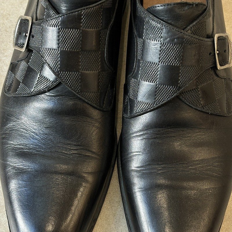LOUIS VUITTON ルイヴィトン レザー シングルモンクストラップシューズ ビジネスシューズ 紳士靴 ブラック ダミエ ST0196です!!