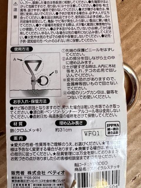 | * 商品説明 * ◆定価2728円の商品 地面にねじ込むだけで係留できる鉄製のポール。 リング部分は360度回転!愛犬の自由な動きを妨げないのでアウトドア、キャンプ時等に最適です。 サイズφ9.0mm×431mm 打ち込み部分長さ約31㎝ 適応体重15㎏まで ※商品重量約325g 未使用新品ですが、個包装でないためややキズや汚れがある場合があります。 先端のビニールカバーが付いていない場合があります。 処分品とご理解の上ノークレームノーリターンでお願いします。 | ||||||||