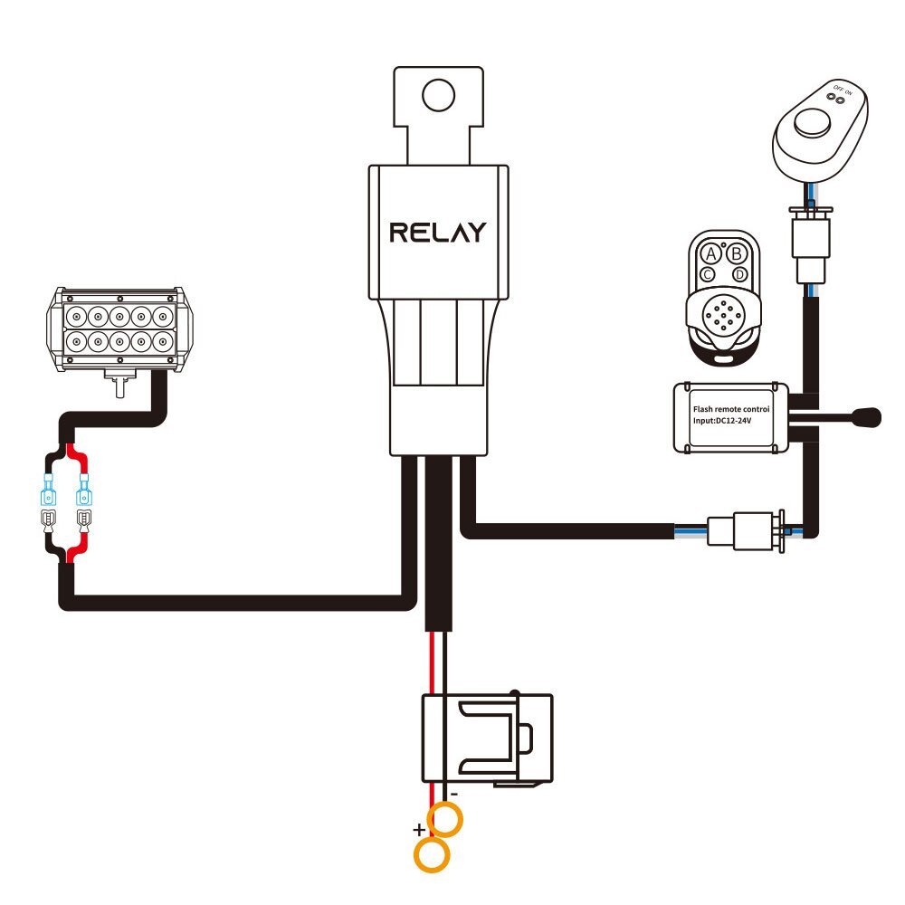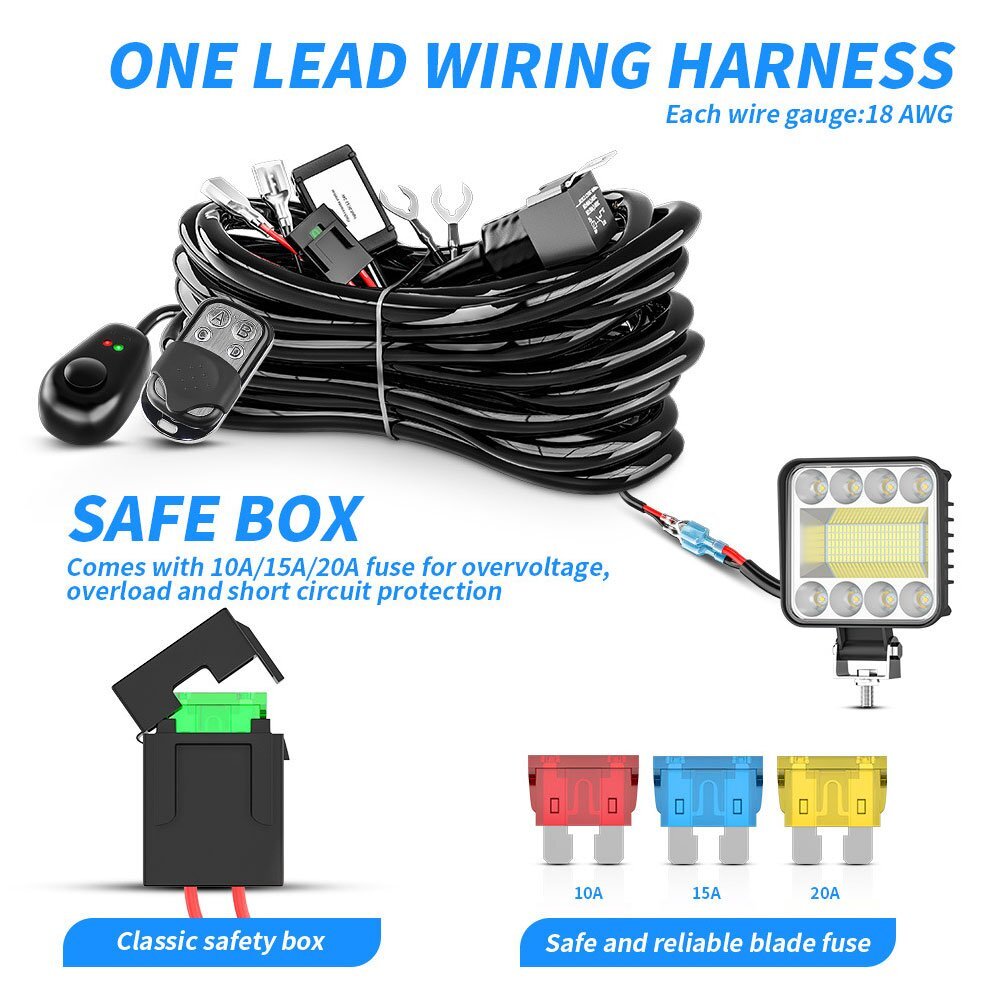 ...回路保護:パワーリレー - 安全保護および変換回路。ブレードヒューズは過電流や短絡が発生した際に回路を保護します。2つの光出力接続があり、2つのLED作業灯または2つの小型ワットLEDライトバー、その他のオフロードLED(最大180Wまでの接続)をフックできます。