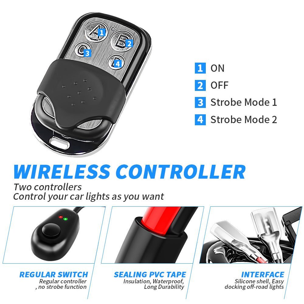 ... 幅広い用途:すべての車両、パワースポーツ、ボート、および12V電源を備えたデバイスと互換性があります。設置が簡単で、市場のほとんどのLEDライトバーに適合します。視認性と使いやすさのために青色の点灯インジケーターが付いています。ケーブルの全長は3メートルで、車の最後まで十分に届く長さのワイヤがあります。