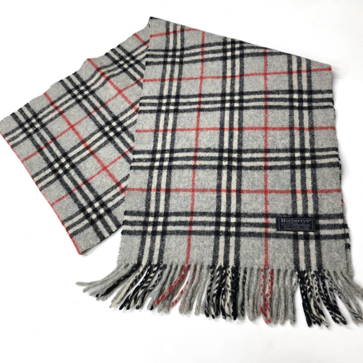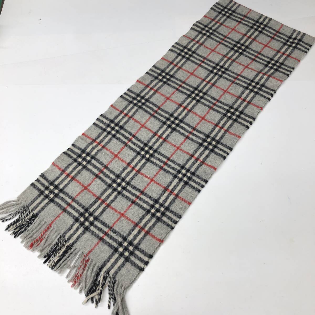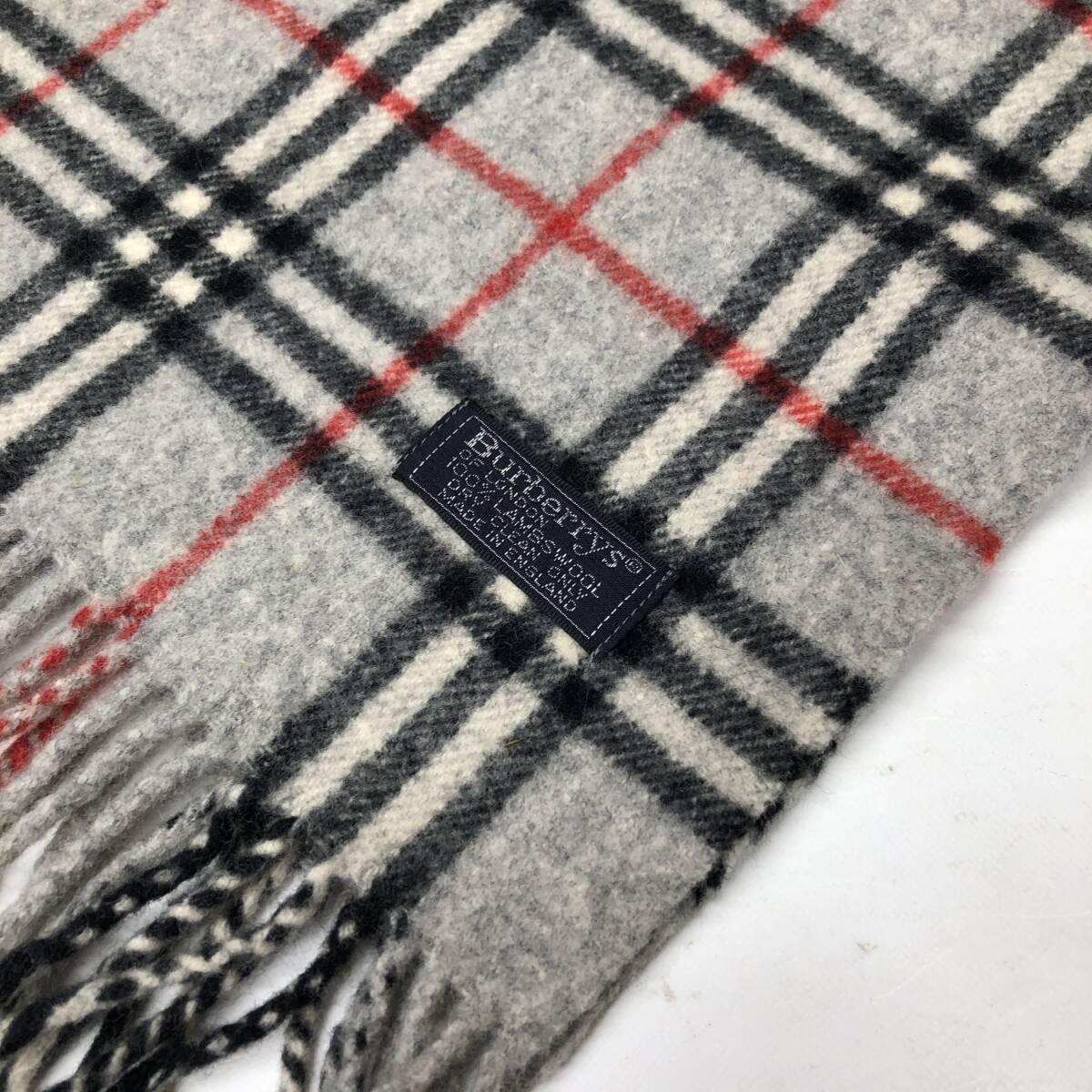 Burberrys バーバリーズ イングランド製 ラムウール マフラー グレー ノバチェック②