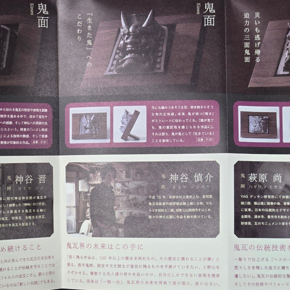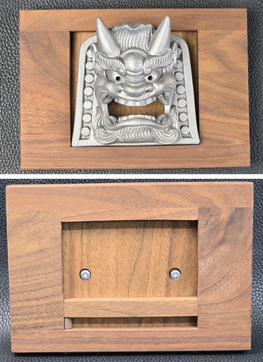 ▼商品名 | 鬼瓦家守 神谷慎介 作 「鬼面」 F-01 栞 共箱 三州瓦 御守り 厄除け 魔除け 縁起物 彫刻 伝統工芸 置物 インテリア スタンド欠品あり |