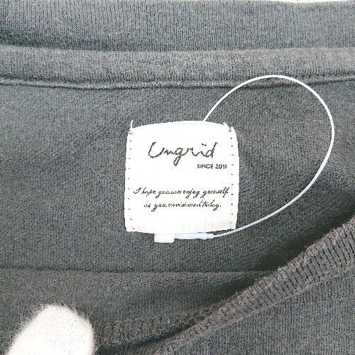 ◇ ⊂ ungrid アングリッド 綿100% 半袖 プリントTシャツ サイズF チャコールグレー系 レディース E