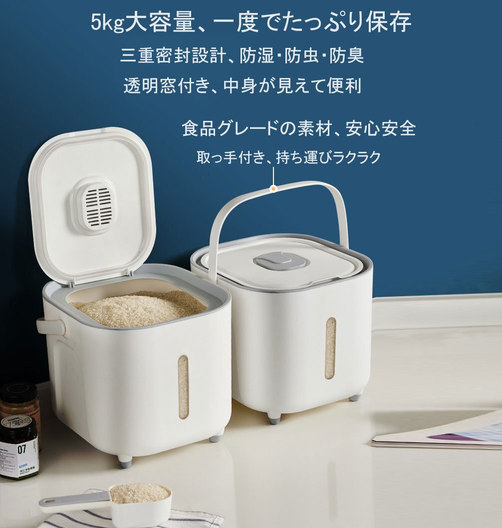 自動 保存容器 米びつ 密閉容器 5kg 鮮度キープ ペットフードの保存対応 梅雨対策 防虫 shw0068.1