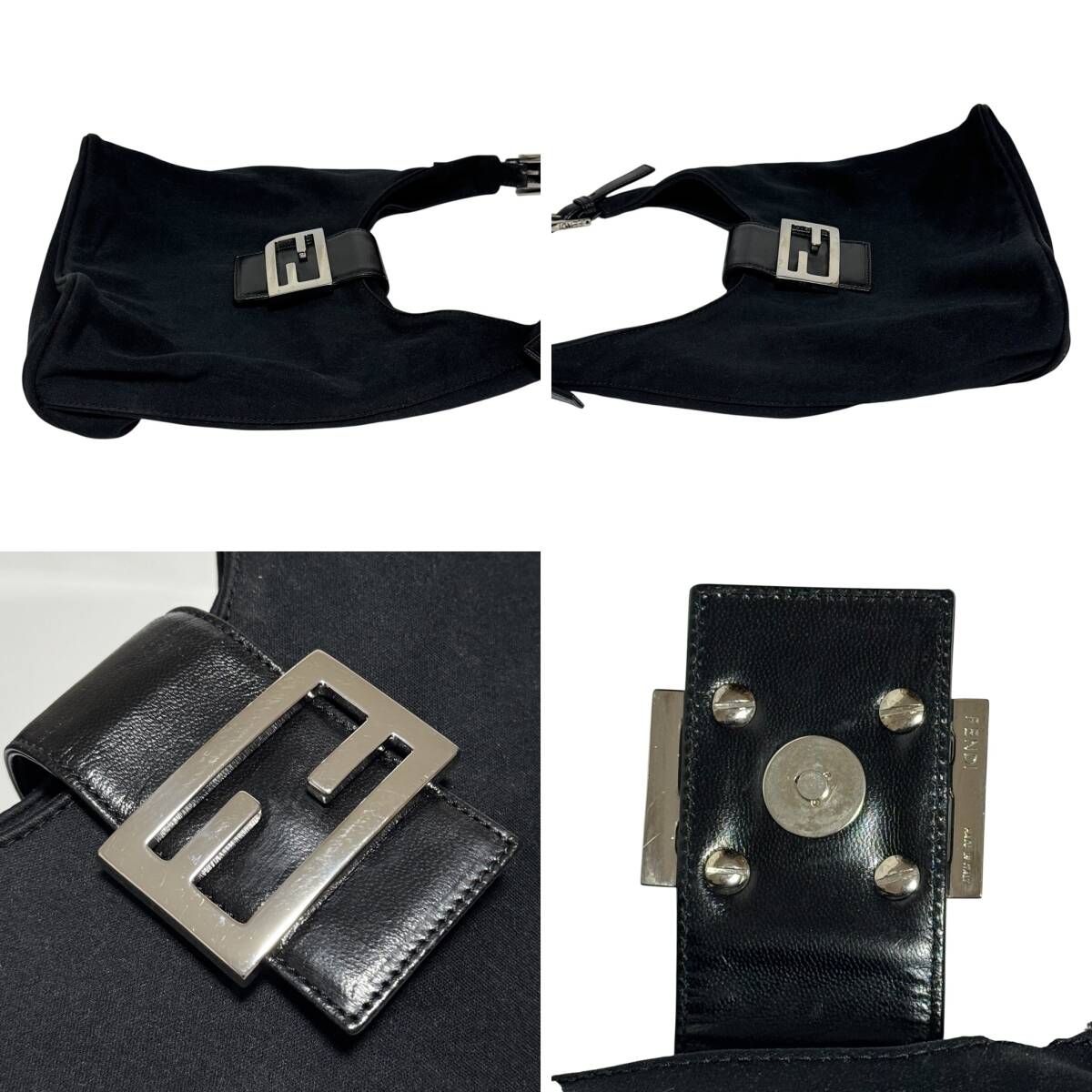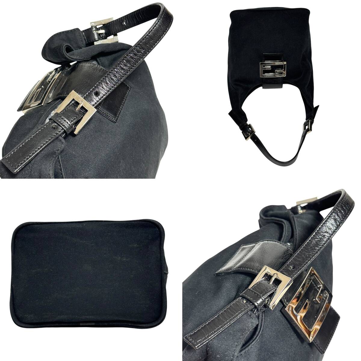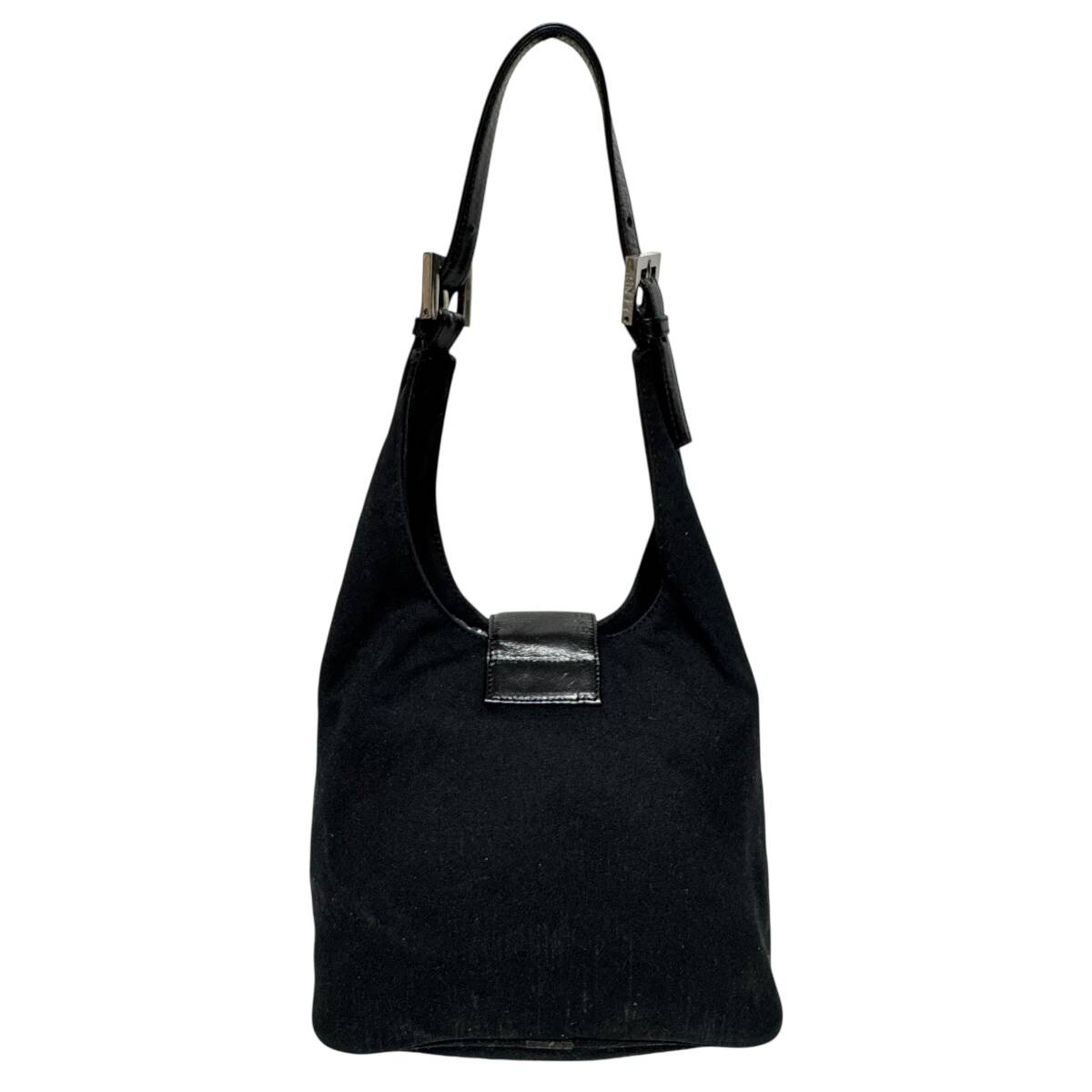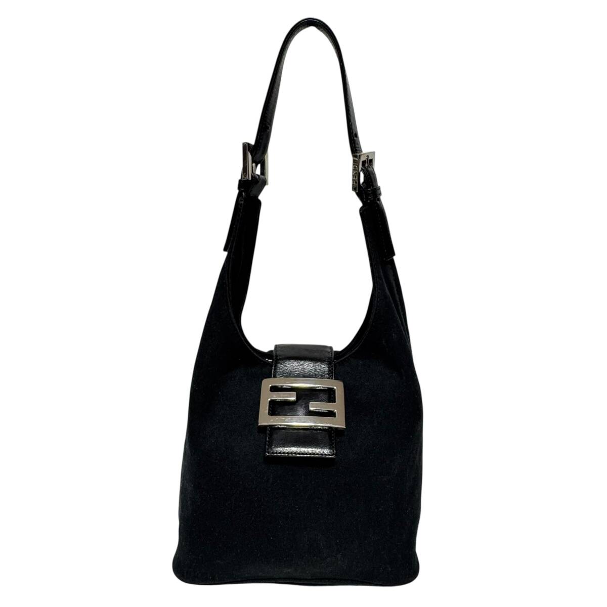 This is a rare vintage Fendi Mamma Baguette bag, featuring the iconic FF logo buckle in silver-tone hardware. Crafted from sleek black jersey fabric with leather trim, this piece offers a perfect blend of elegance and practicality. The structured silhouette and adjustable shoulder strap make it ideal for both day and night use. Its minimalist yet unmistakably Fendi design adds timeless sophistication to any wardrobe — a must-have for collectors and lovers of vintage designer bags.