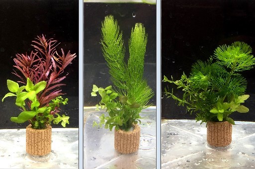 吸着系多孔質ろ材ライフマルチに水草を3種類寄せ植えしたもの3個です。